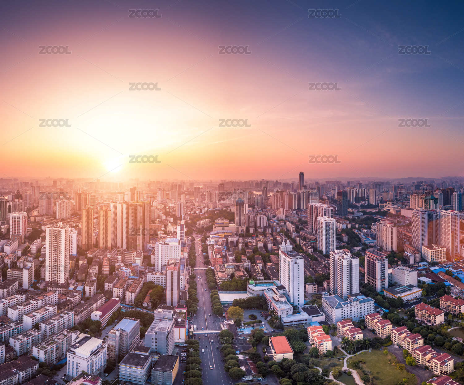 夕阳下的城市风光