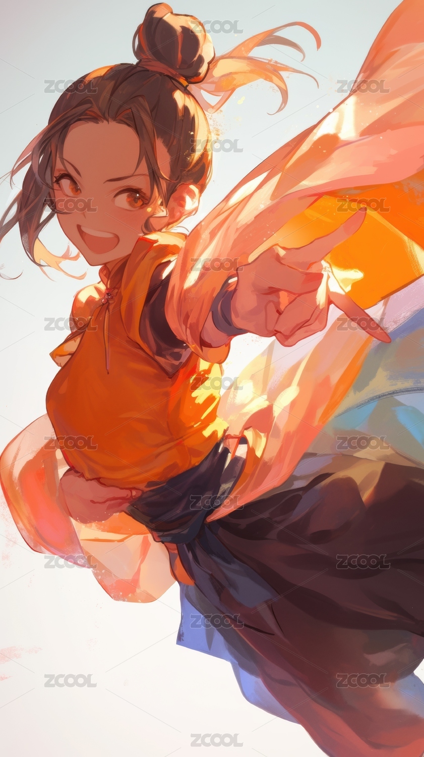 橙衣少女动感舞蹈瞬间