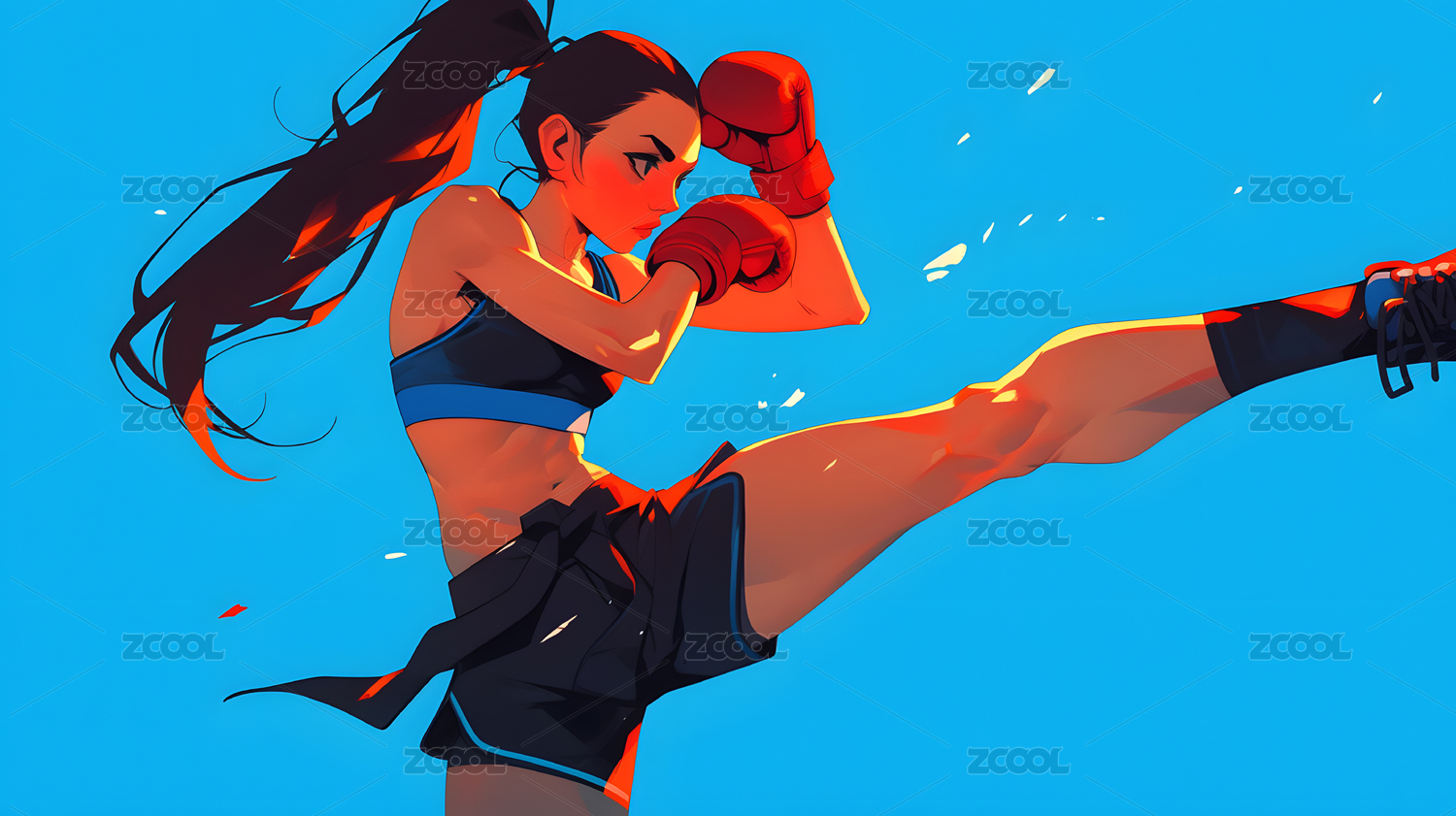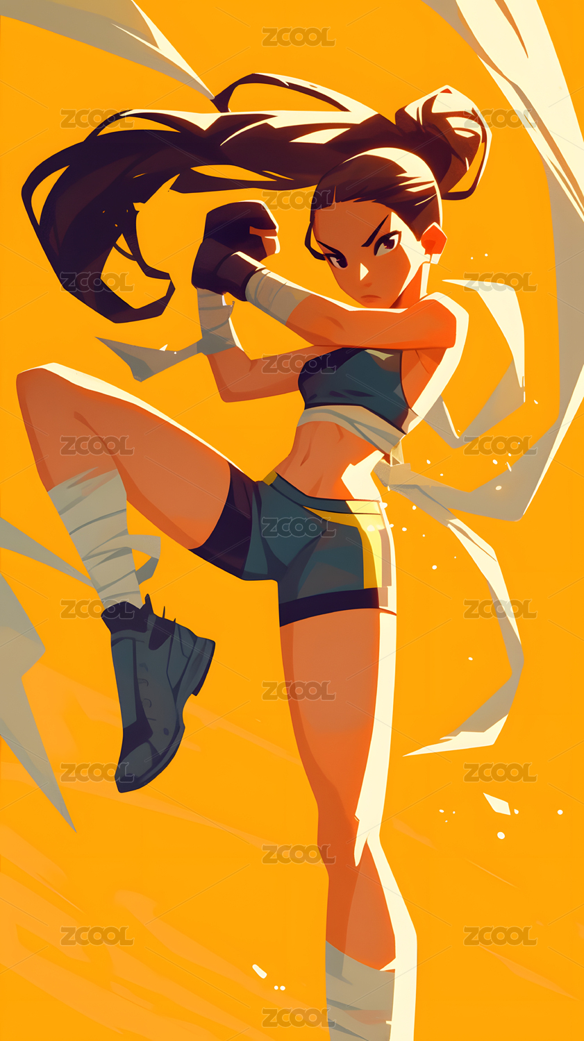 一个女拳击运动员插画