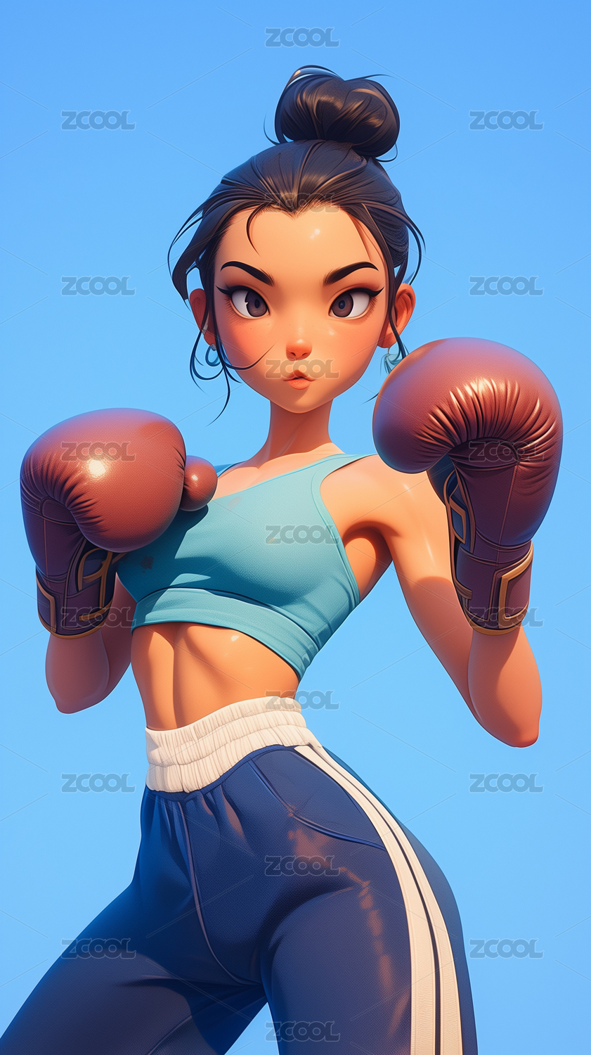 夸张带拳击手套女孩运动员盲盒手办3D卡通
