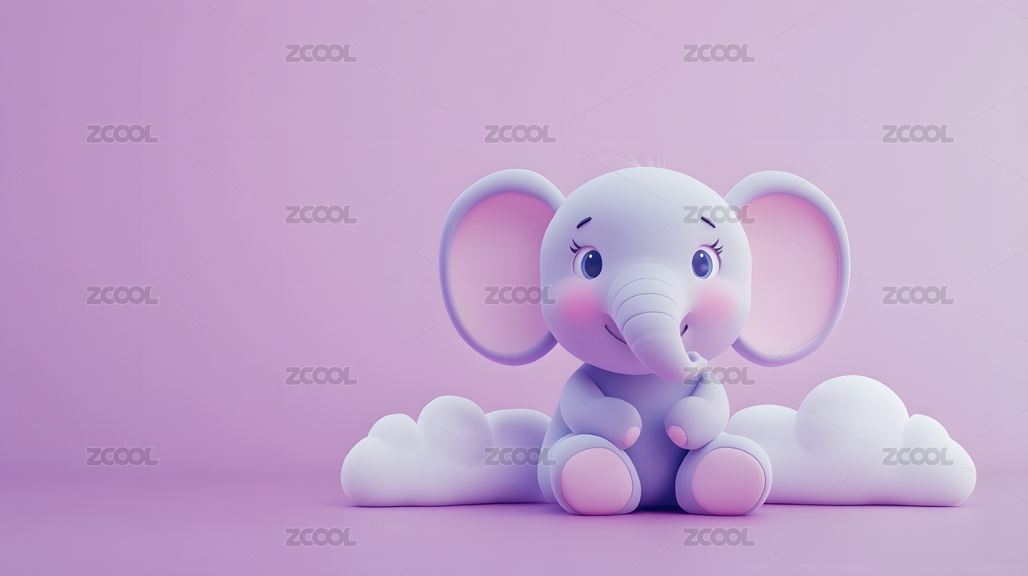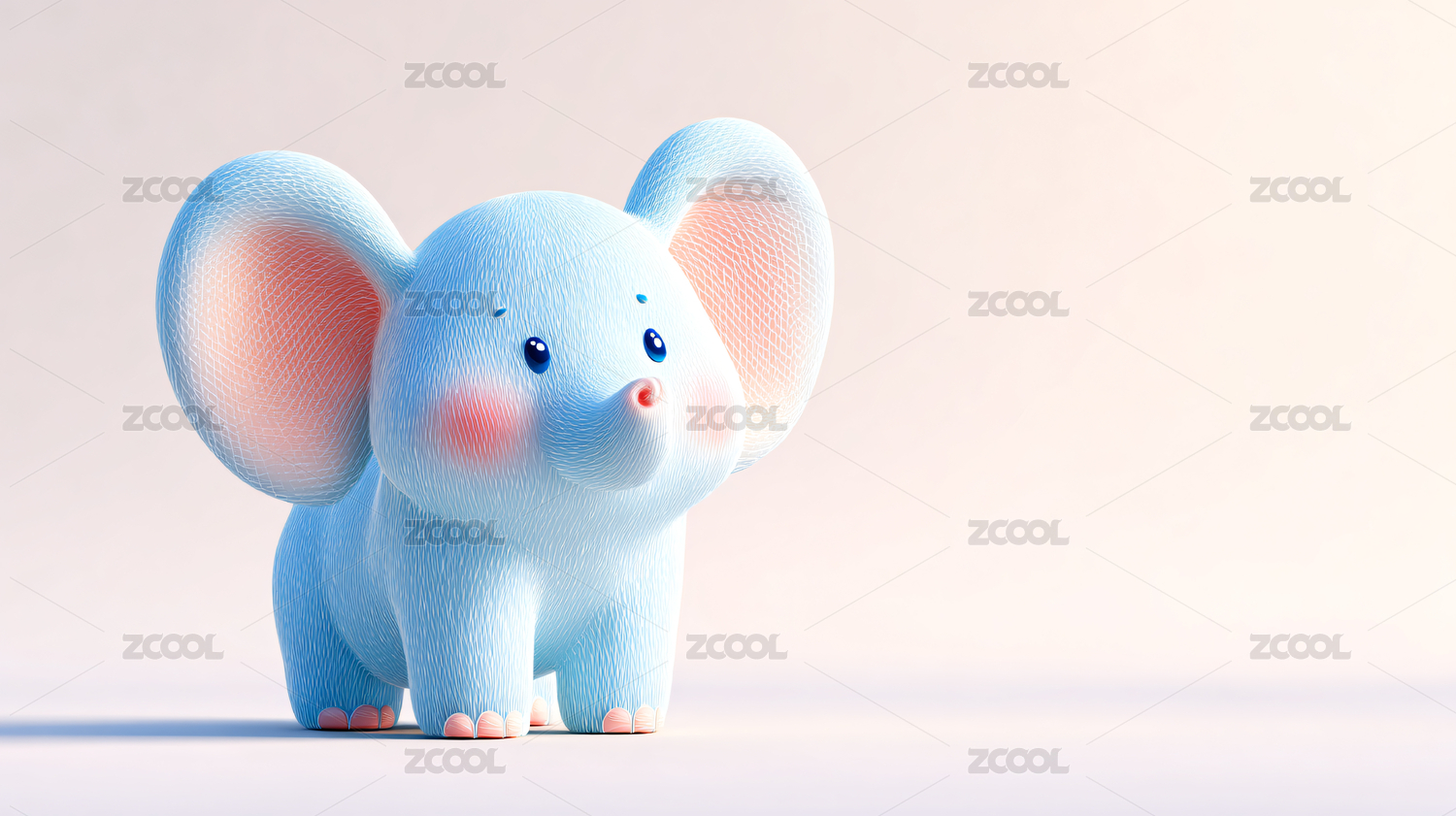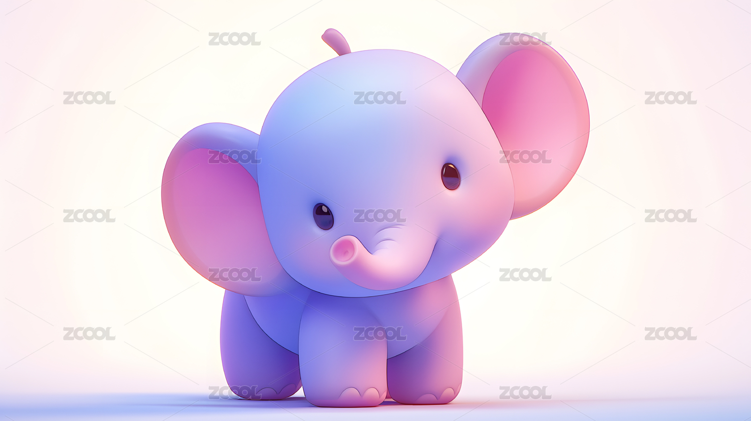可爱,呆萌,小象,象,图标,标志,标识,3D,立体,建模