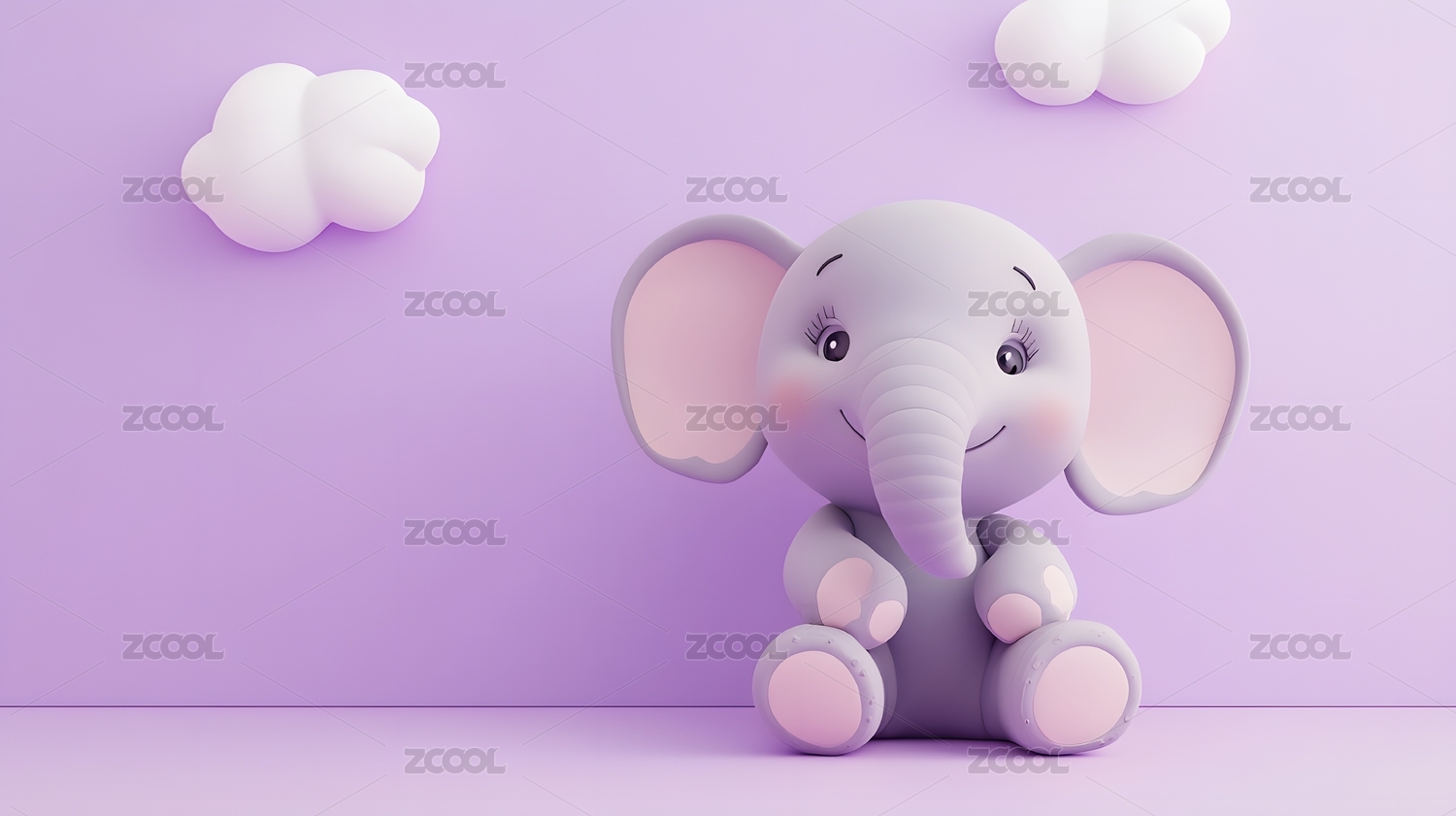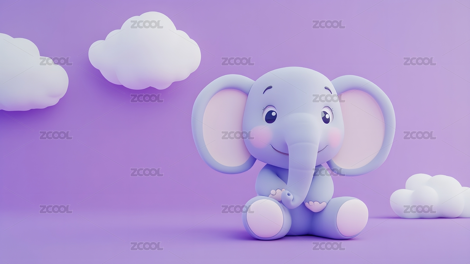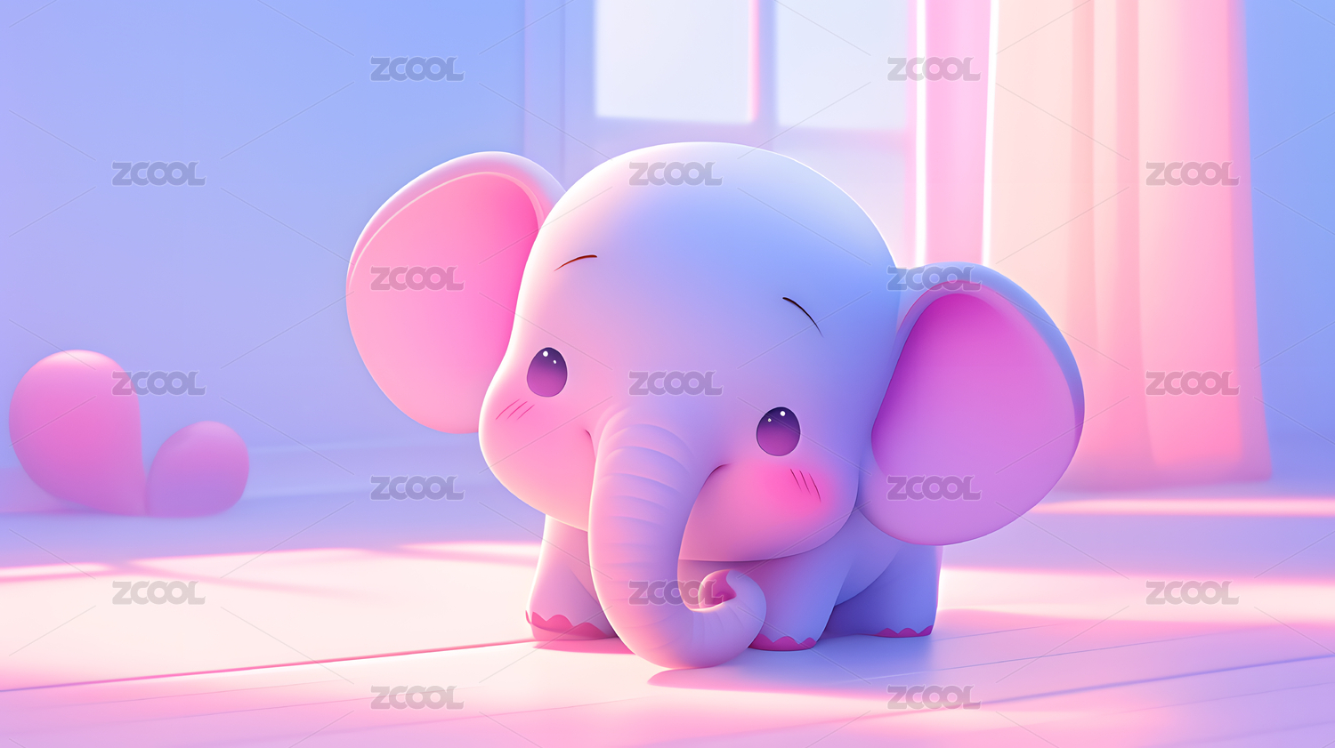 可爱,呆萌,小象,象,图标,标志,标识,3D,立体,建模