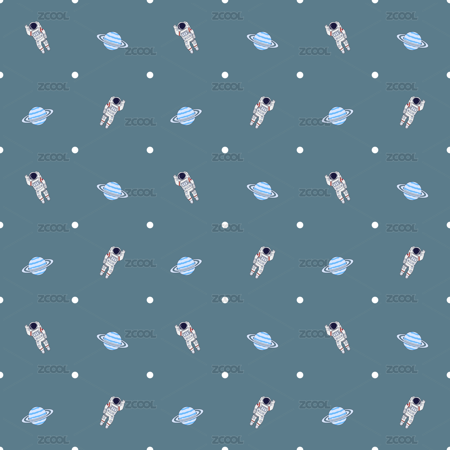 四方连续宇航员星球矢量插画图案
