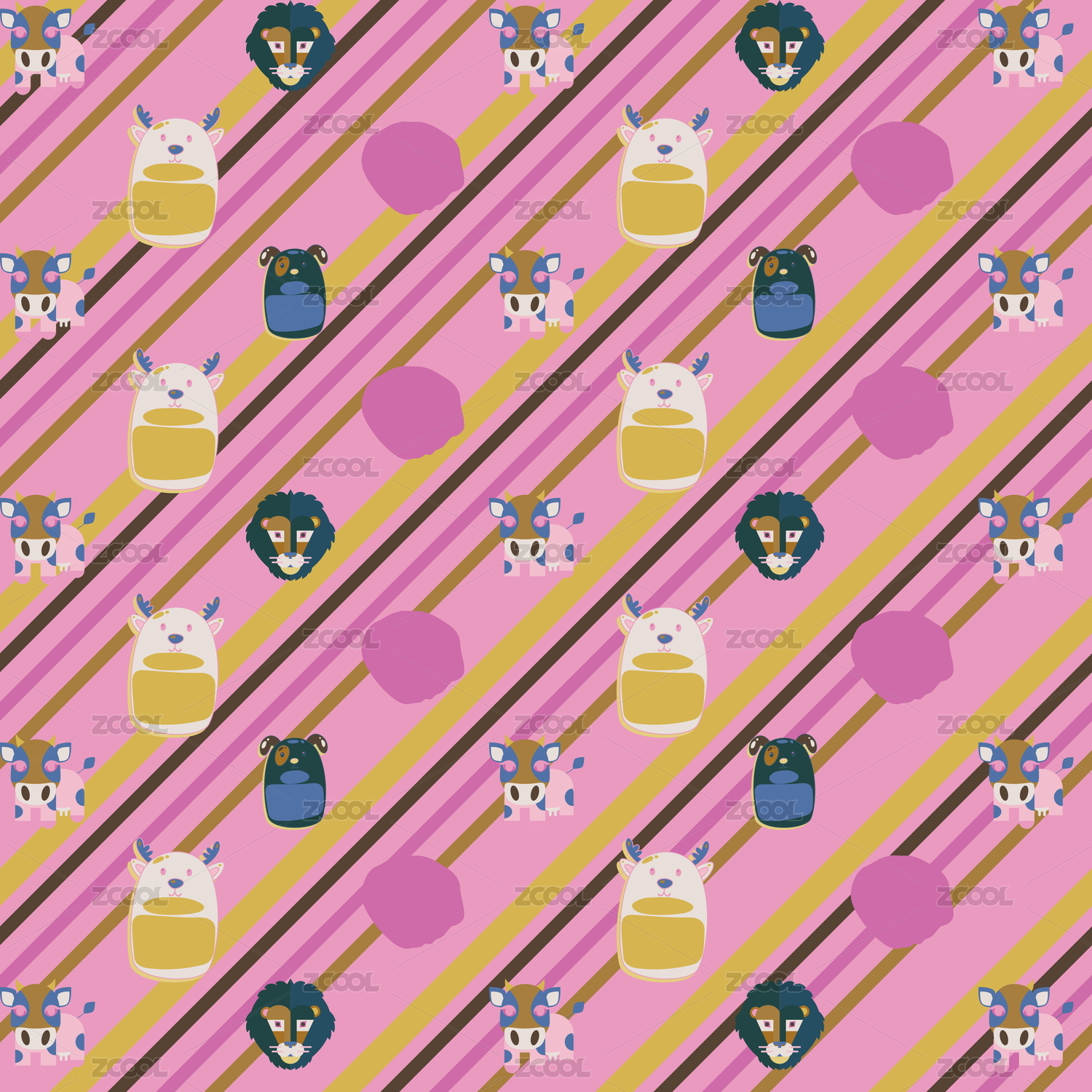 卡通动物无缝插画