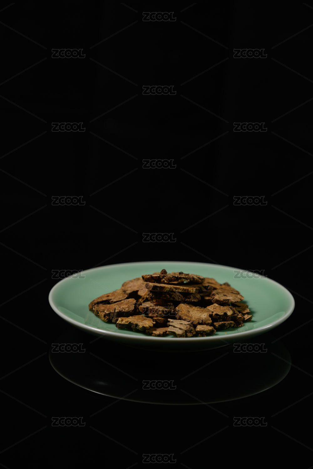 桌面上的盘子里的干川芎片