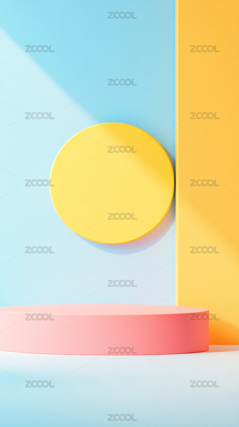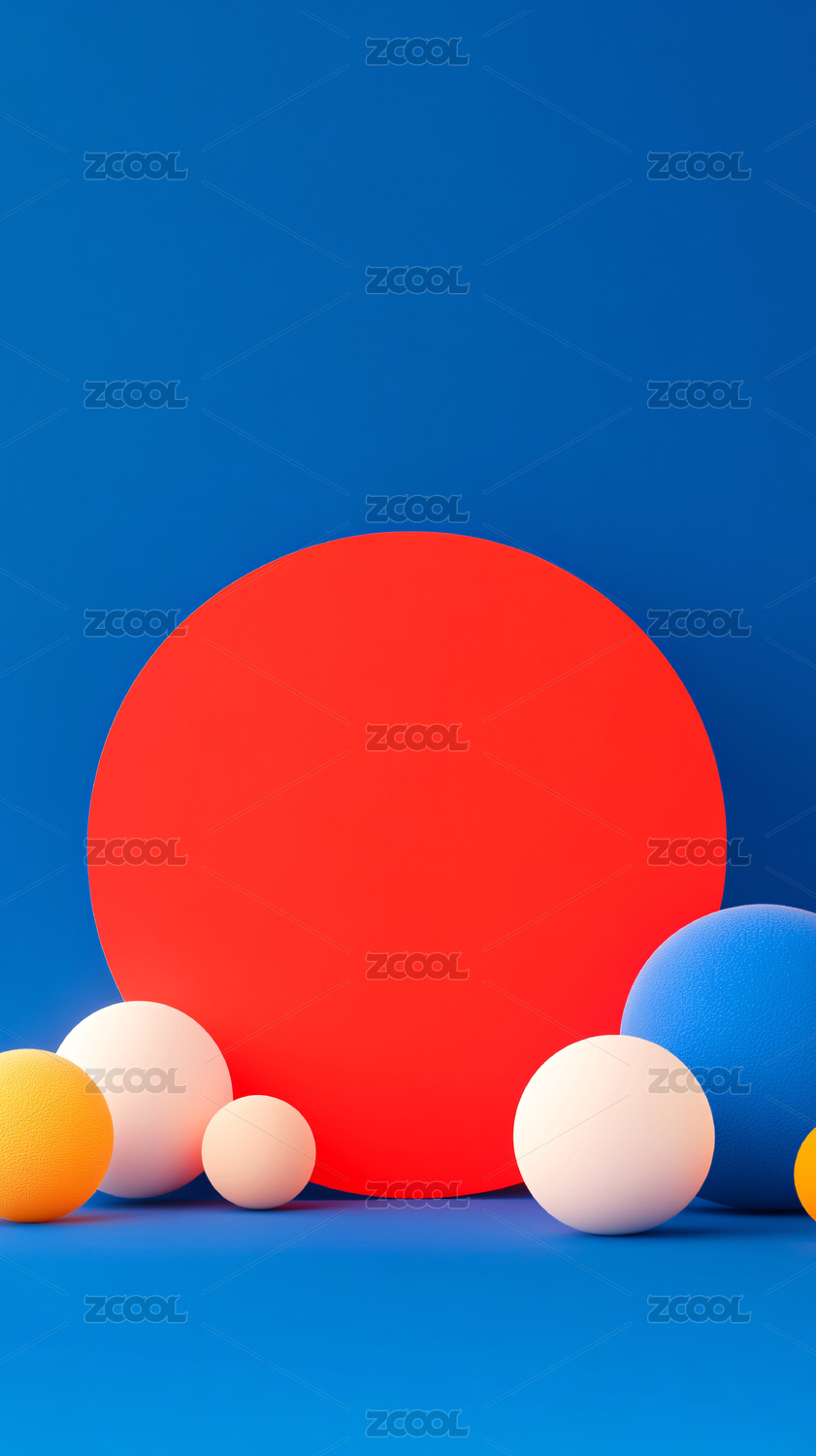 纯色背景搭配圆形纸片视觉感