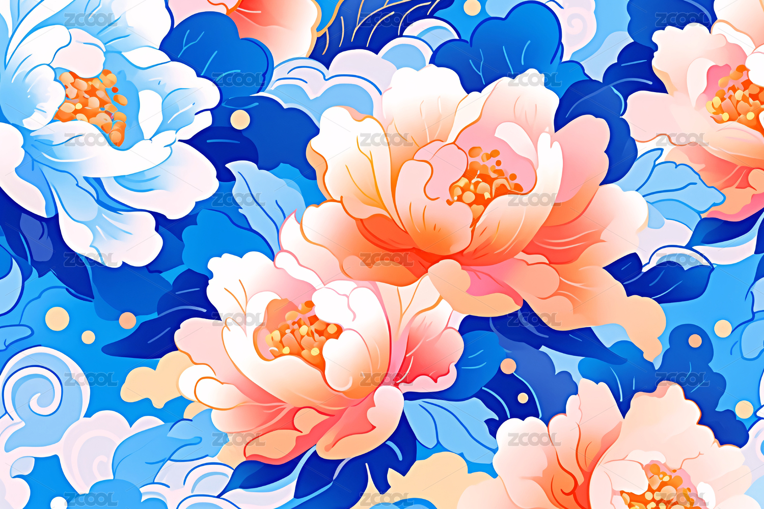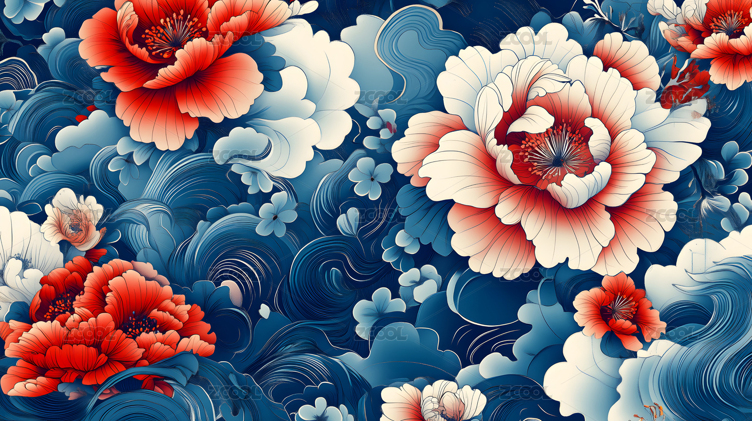 中国风牡丹海浪图案设计图样背景
