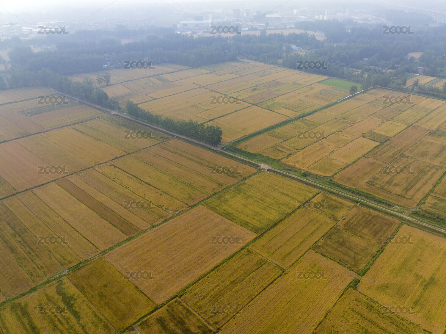 高空俯瞰成片的金色麦田