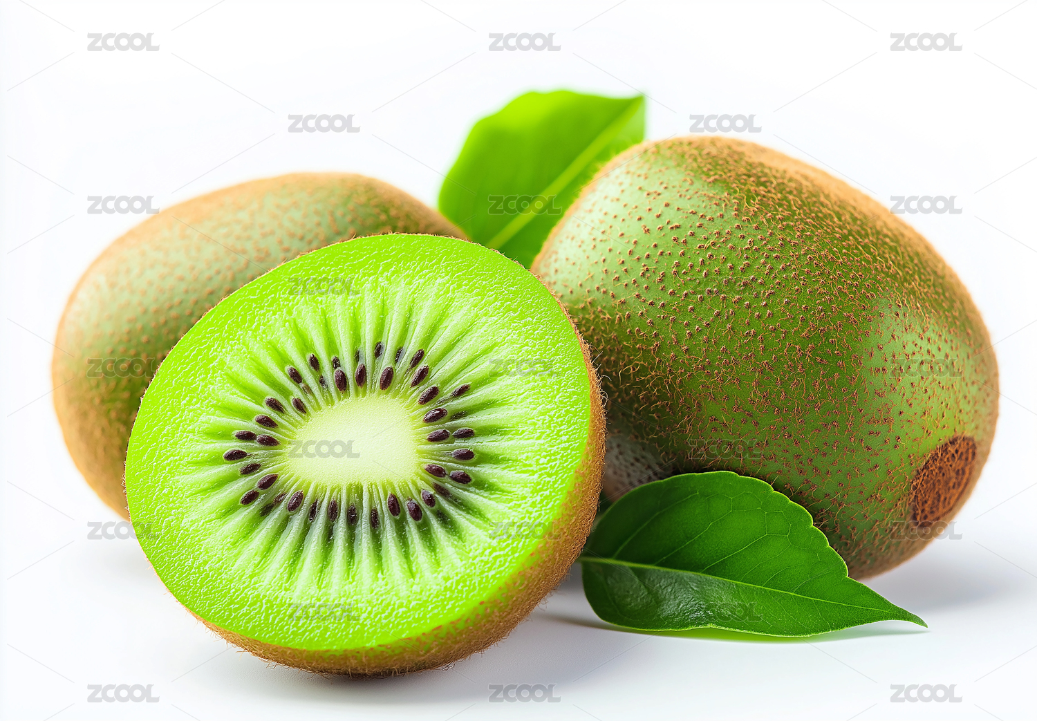 白底上放着一盘子猕猴桃和猕猴桃切面