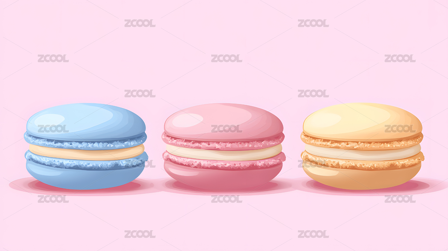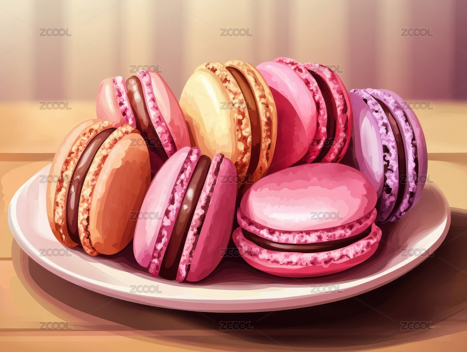 法式甜点玛卡龙小圆饼色彩色糕点美食插画
