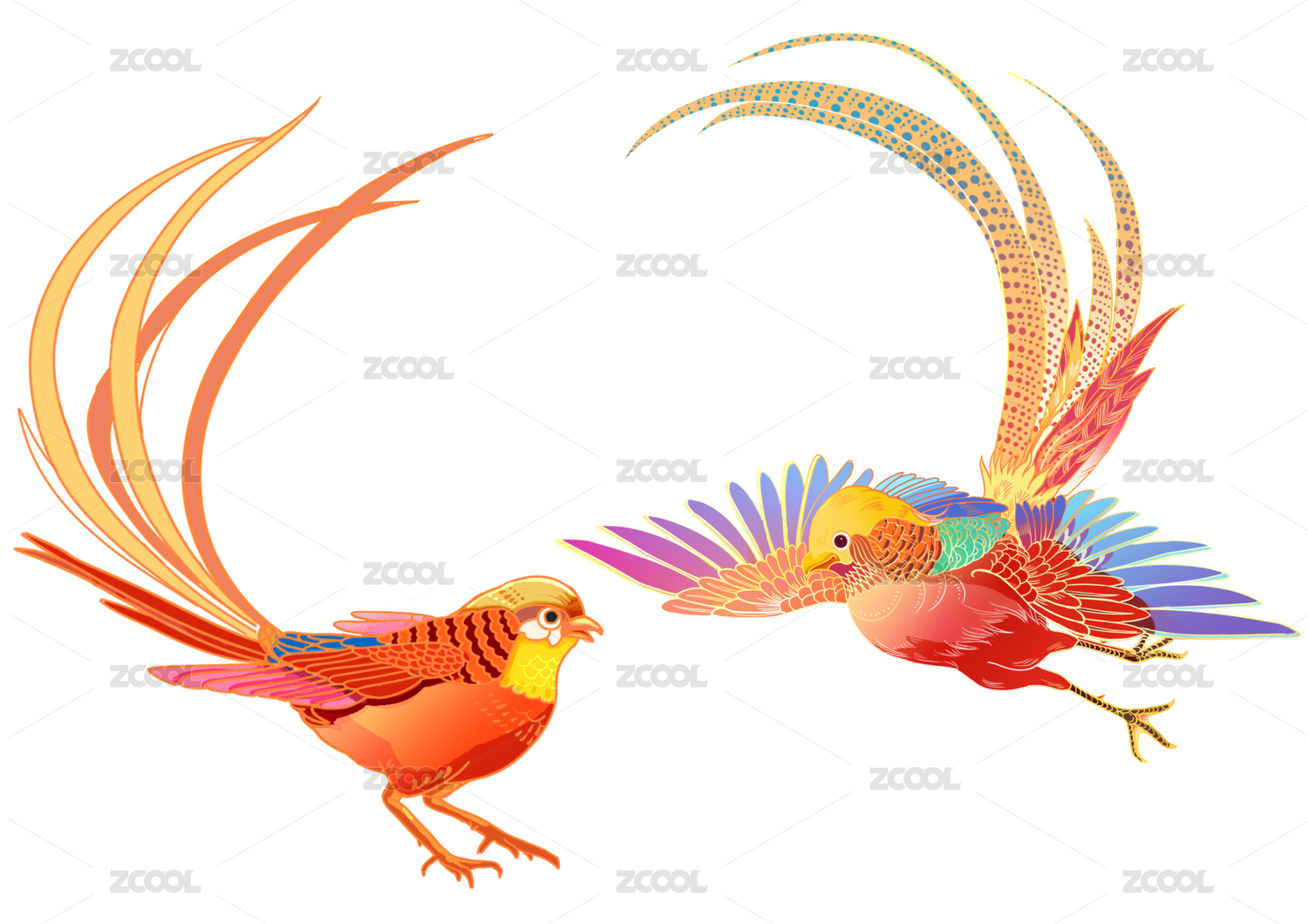 西安锦鸡飞舞嬉戏