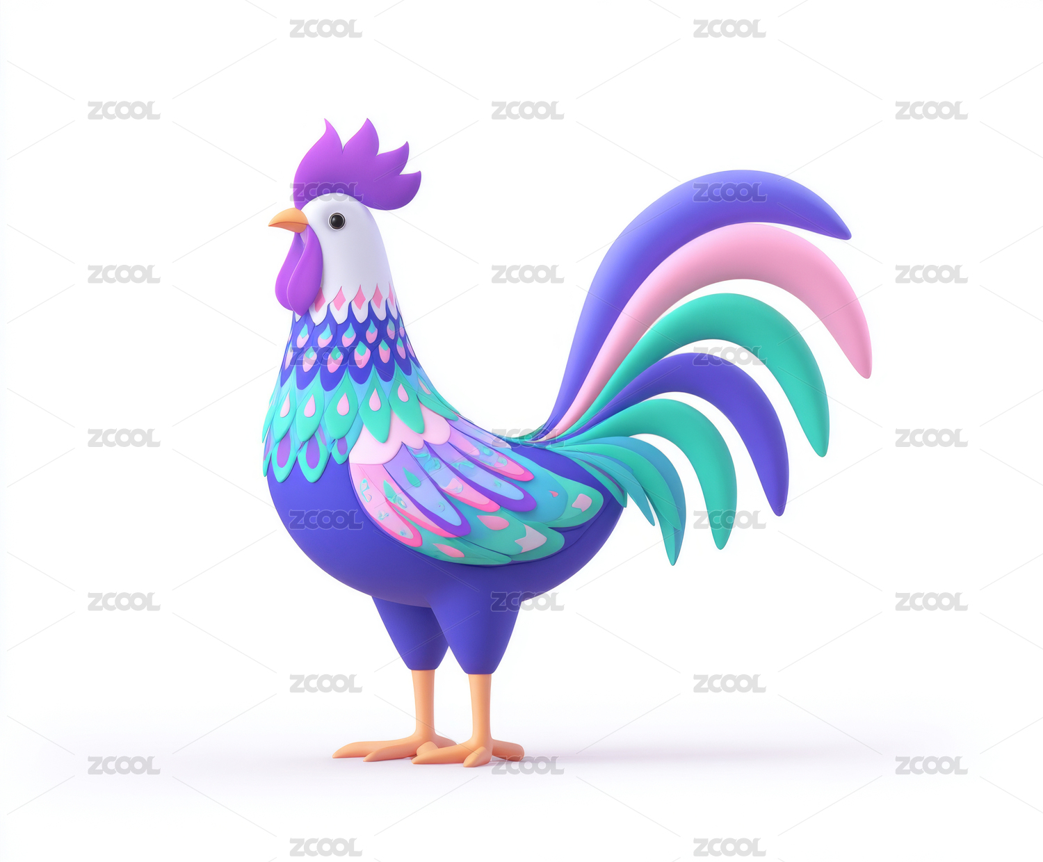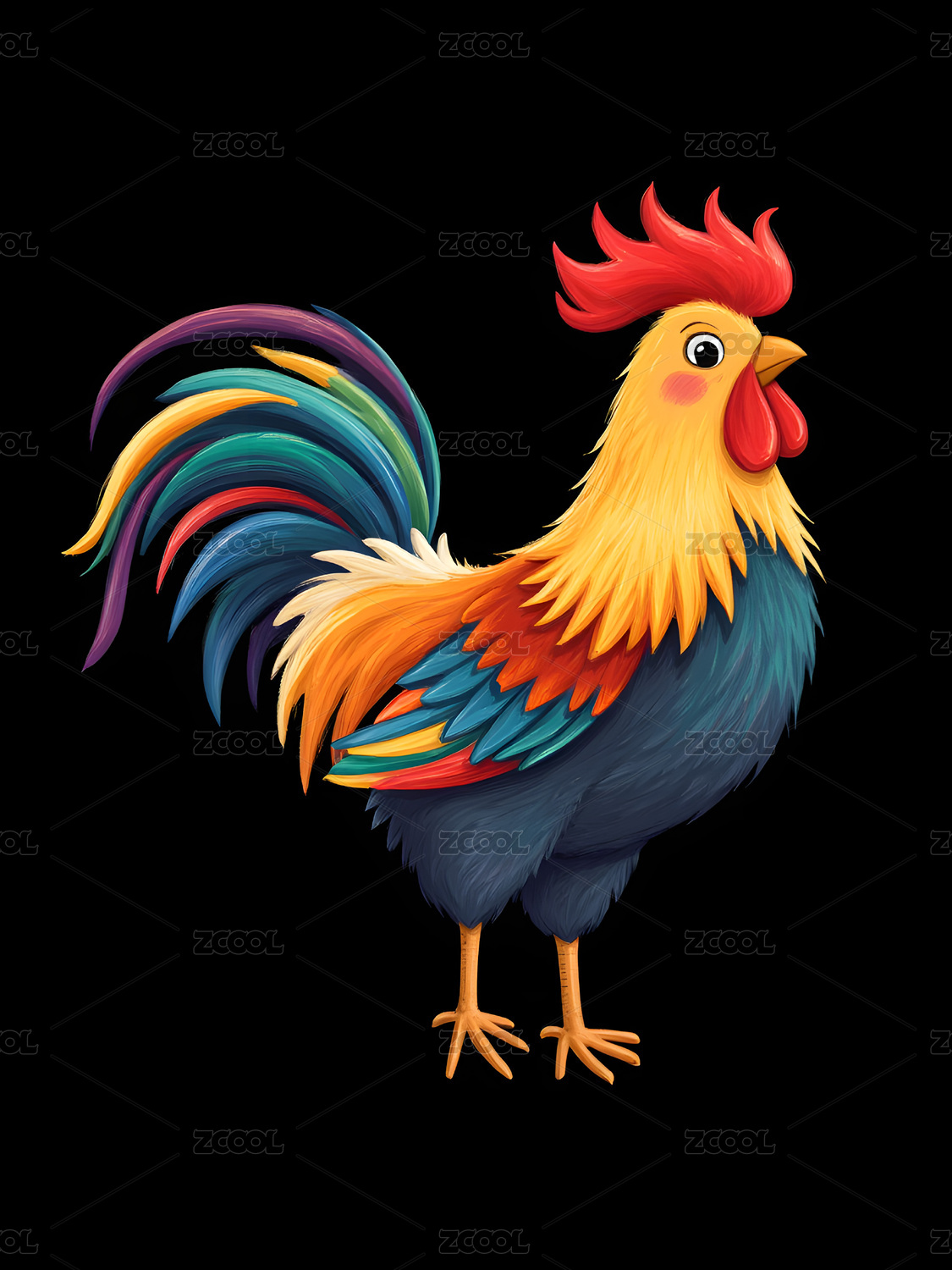一只彩色卡通公鸡