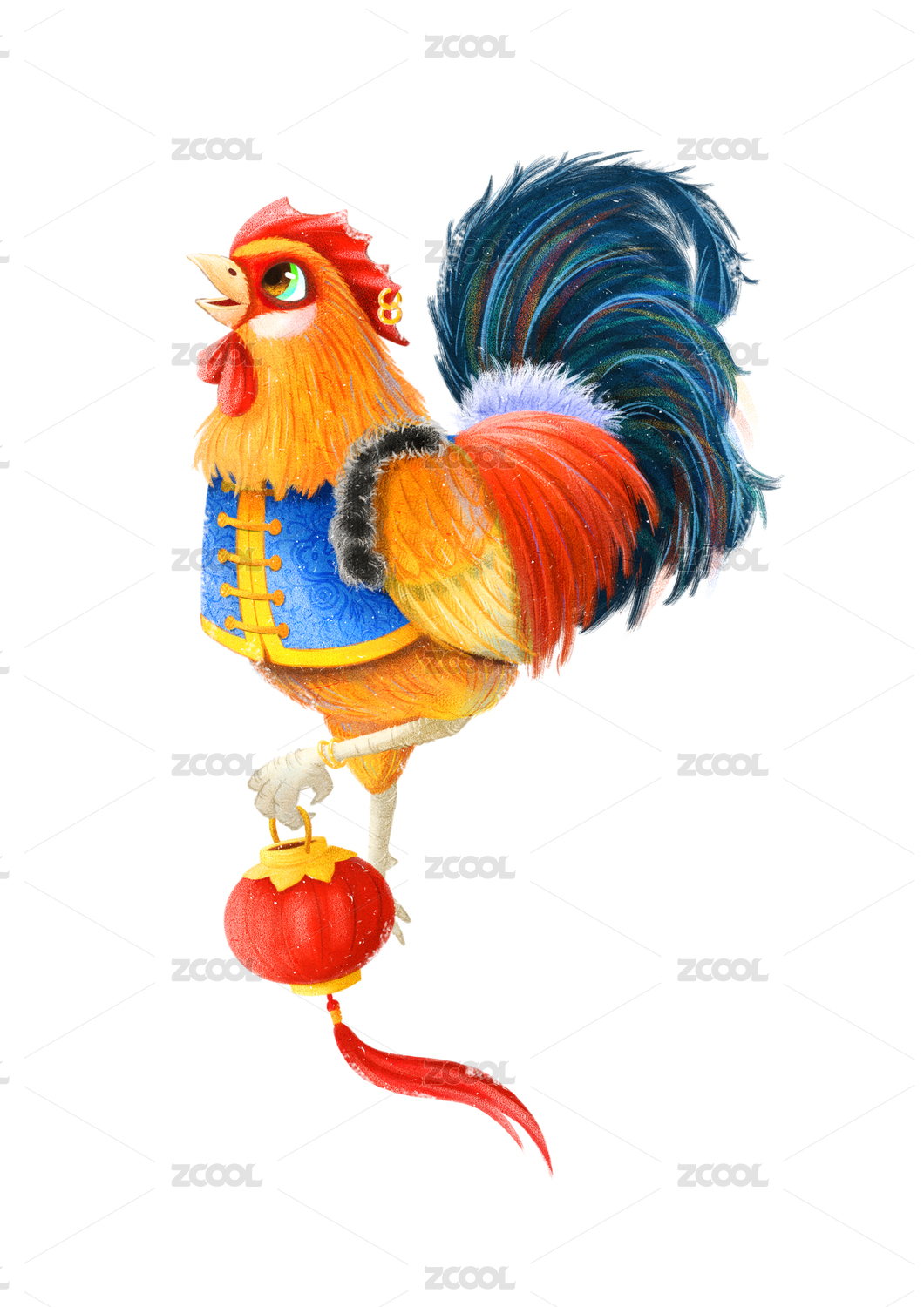 时尚,元素,十二生肖,插画,动物,国潮,文创,鸡