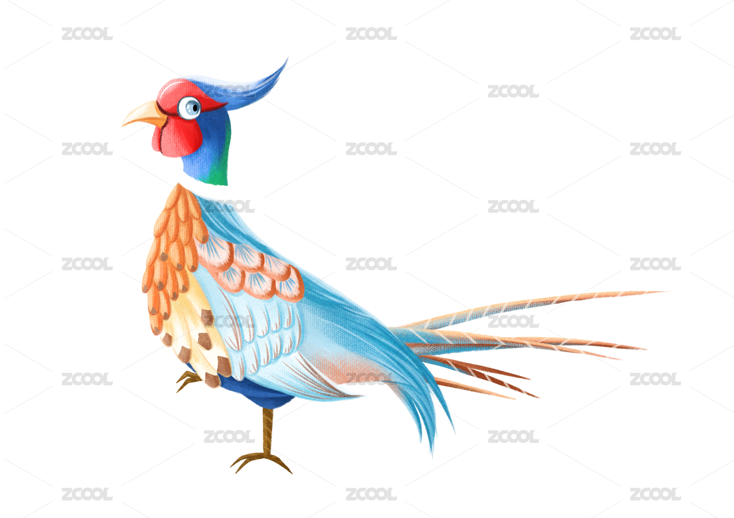 卡通风格的蓝色孔雀