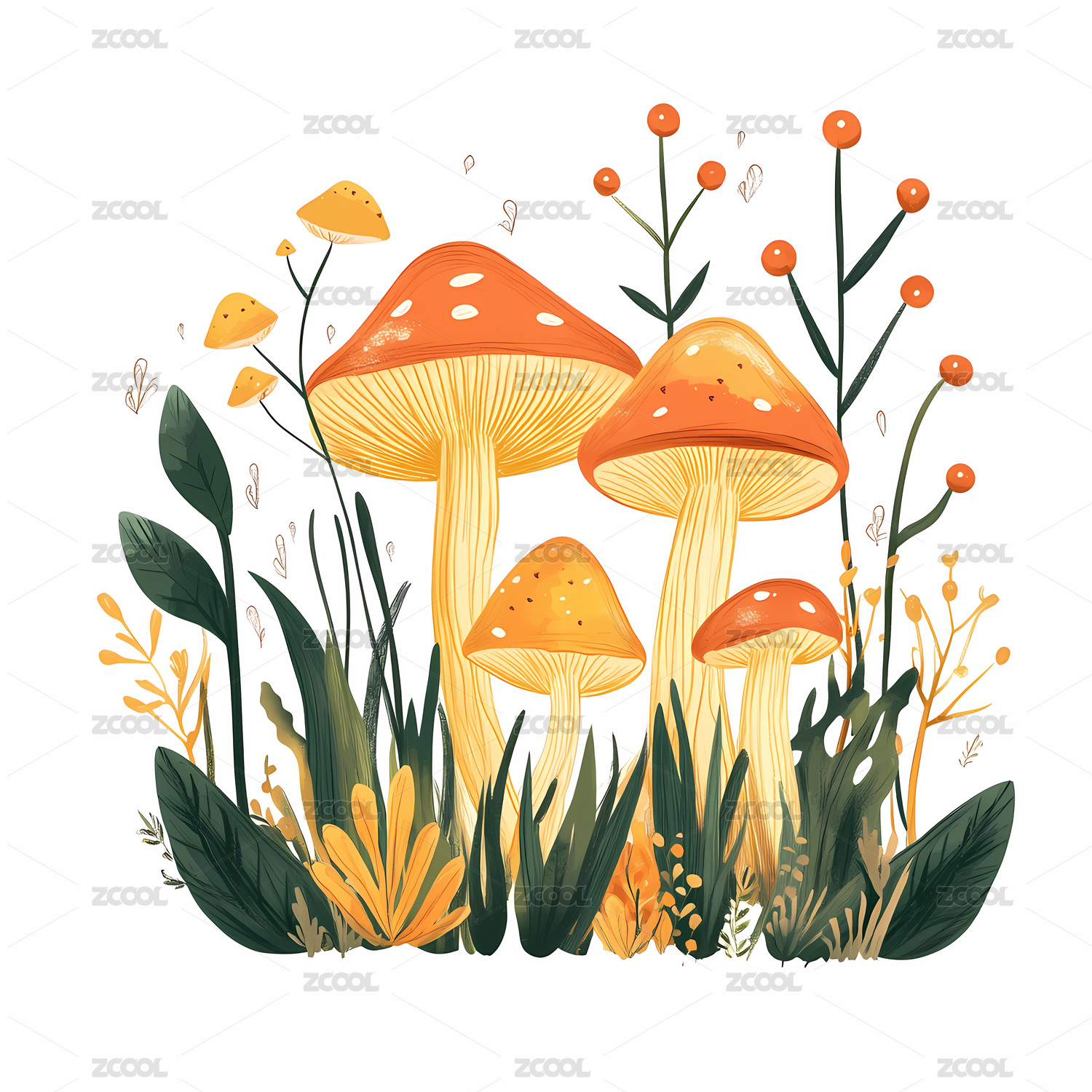 色彩缤纷的蘑菇插画
