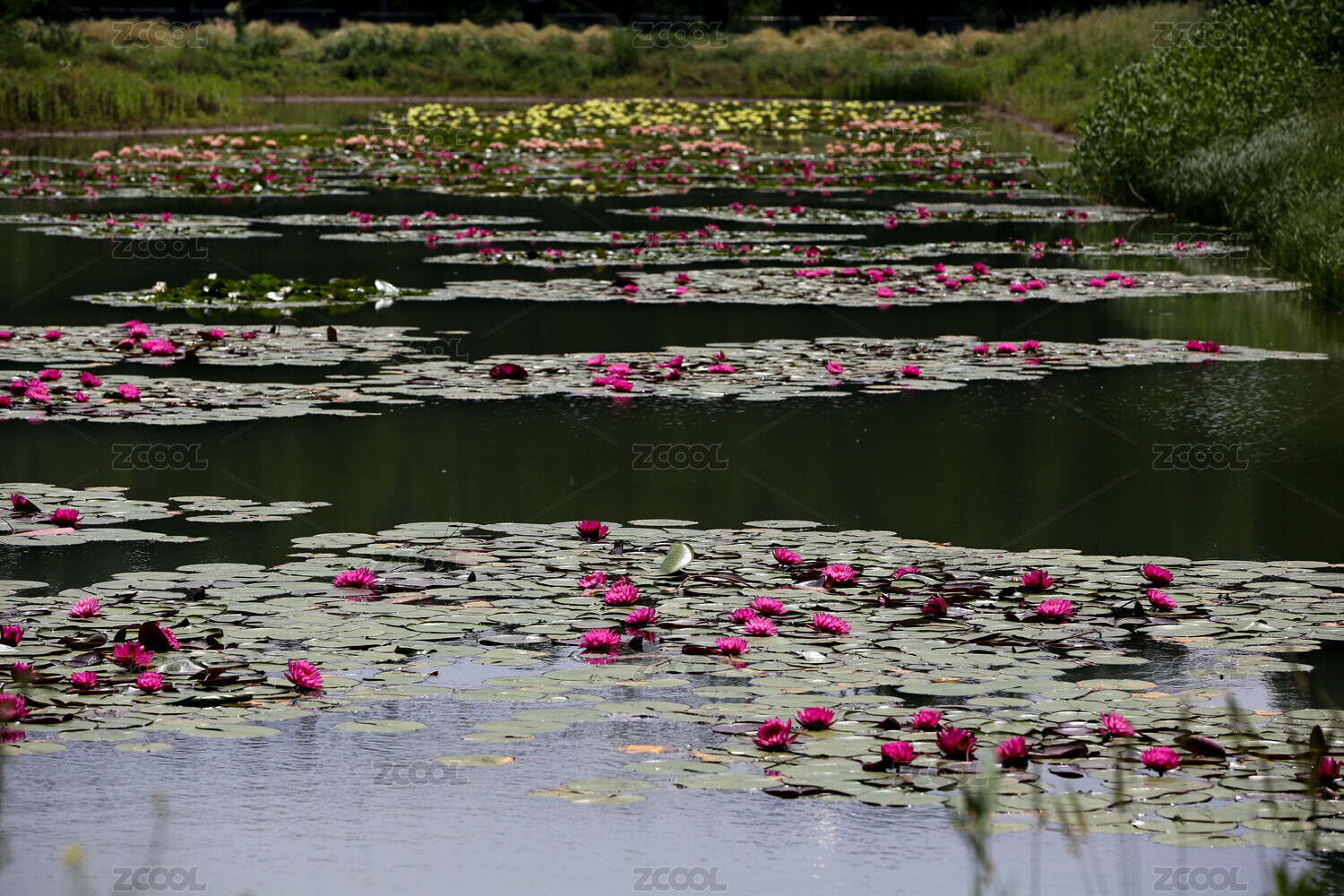山东枣庄滕州微山湖湿地绽放的睡莲