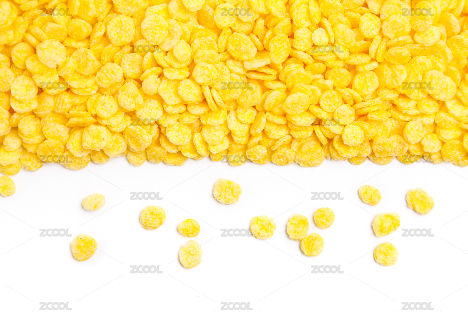 白底上从右上角往左下角倒的玉米片散开