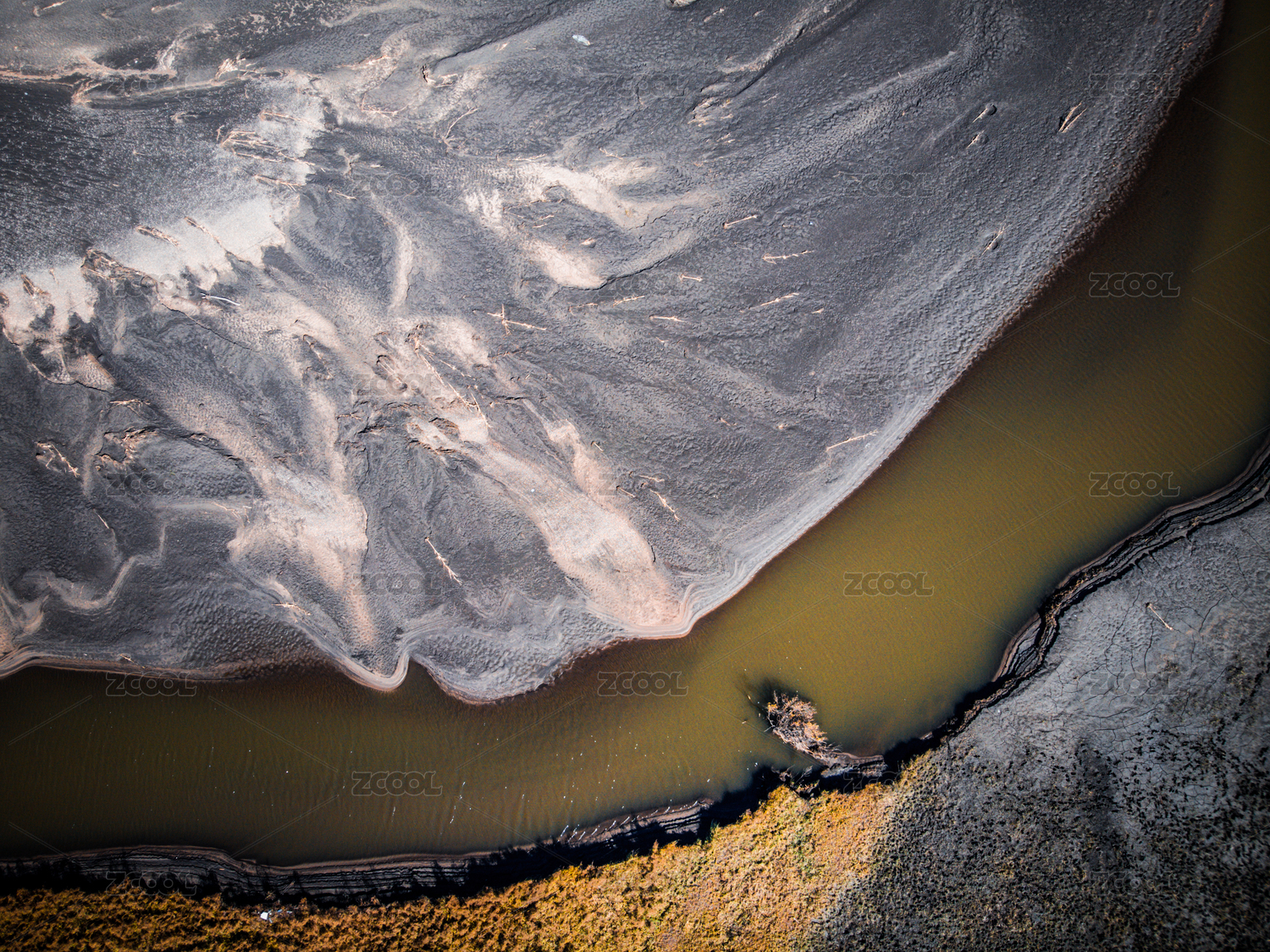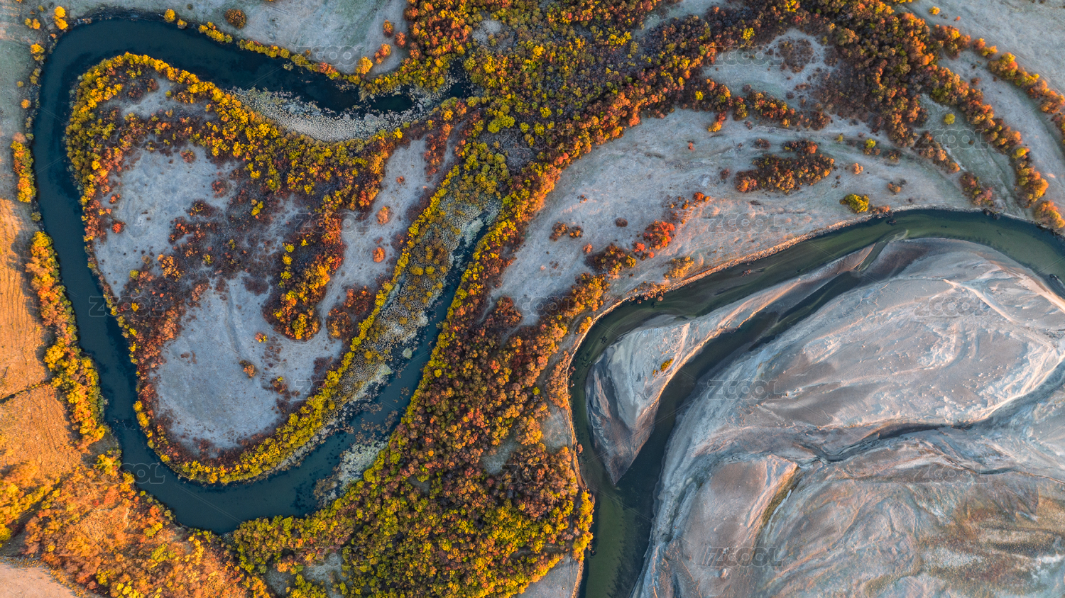 中国,甘肃省,张掖市,黑河湿地,冬季,彩色,河流,航拍