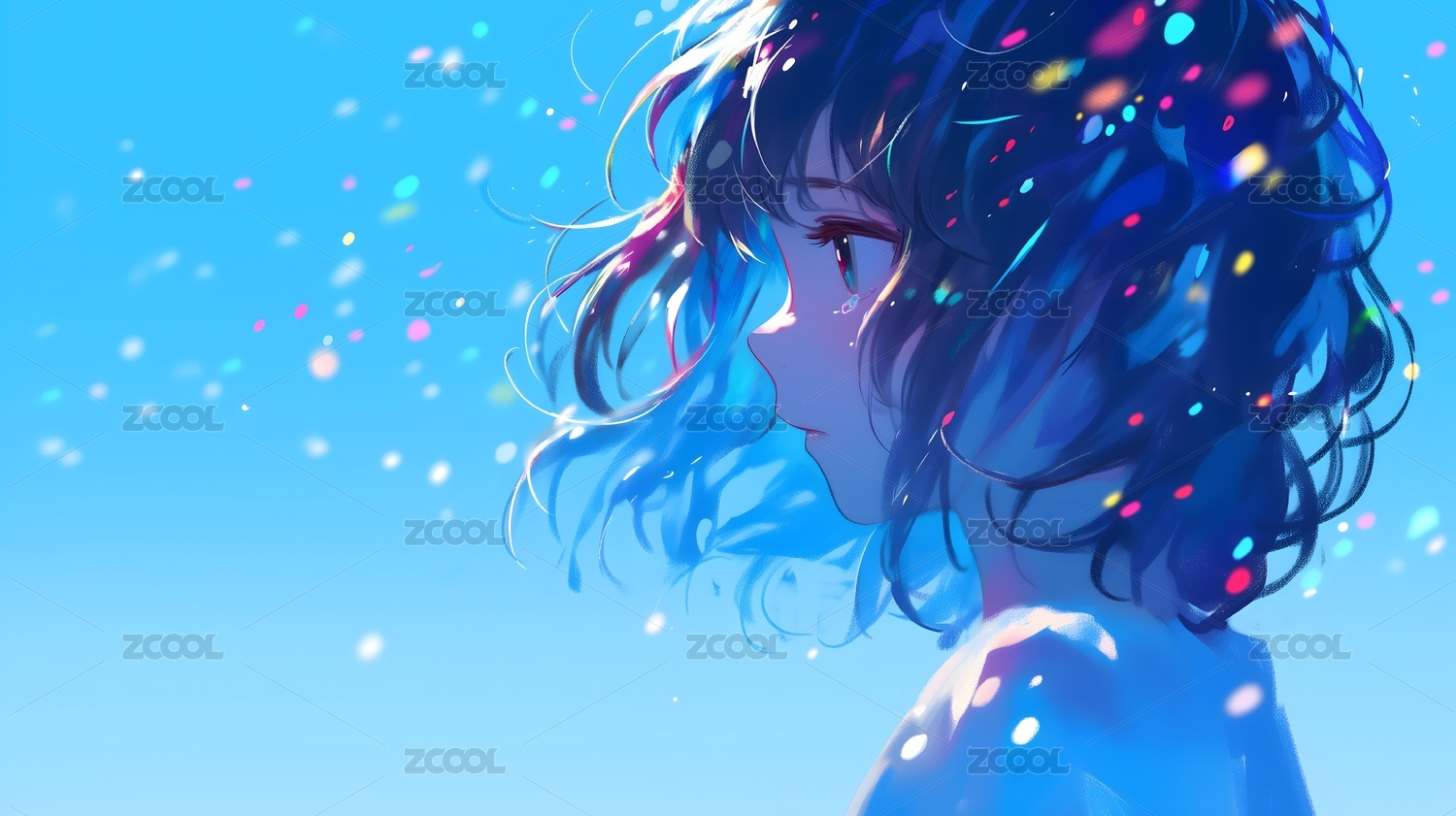 蓝天,女孩,人像,二次元,宁静,少女,柔美,可爱