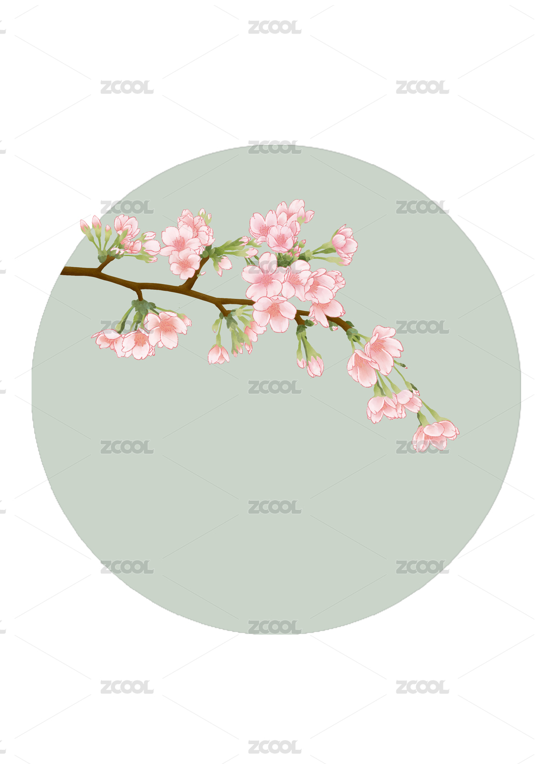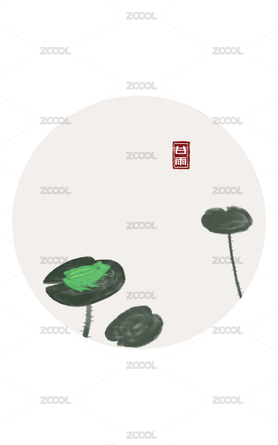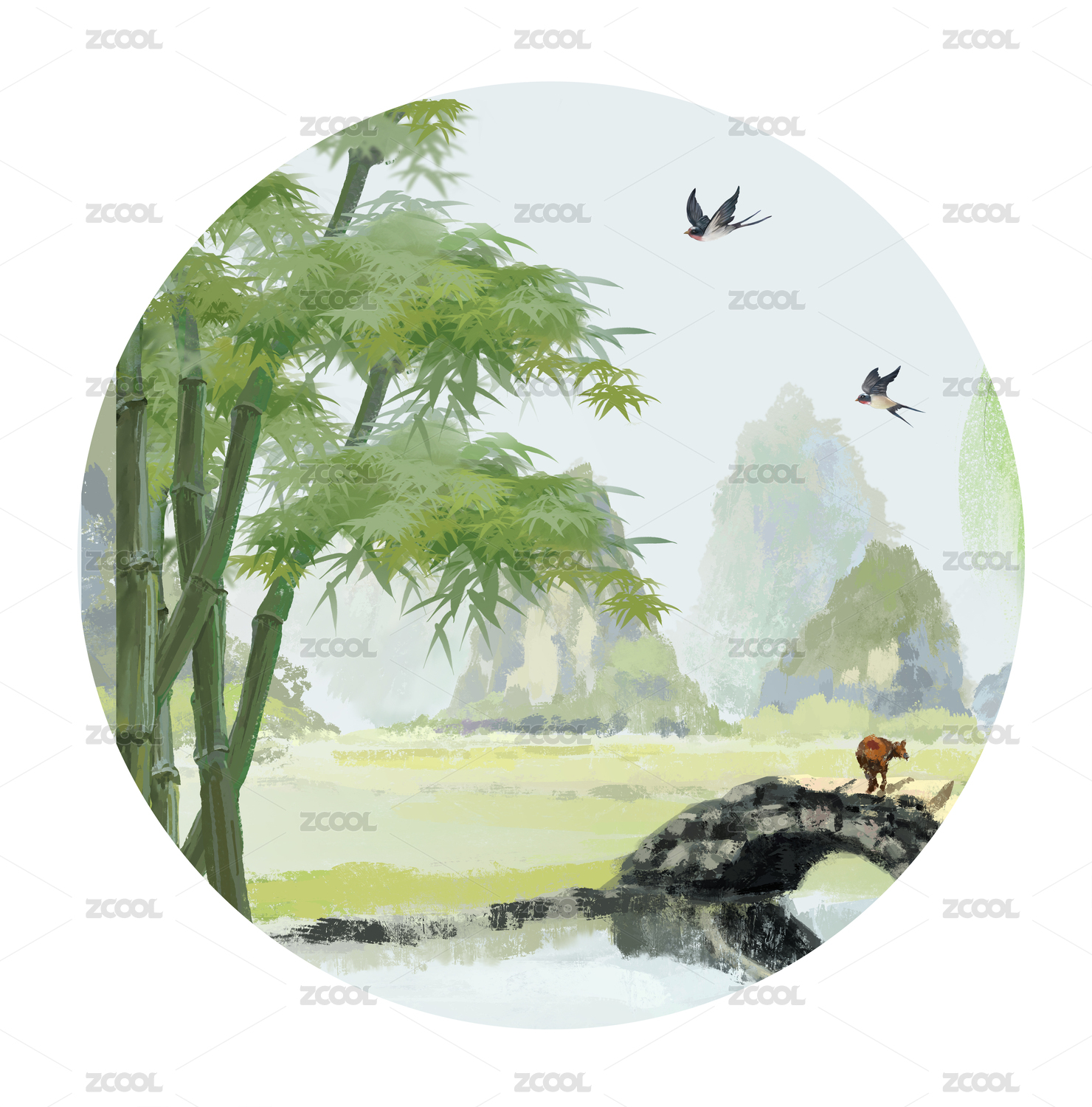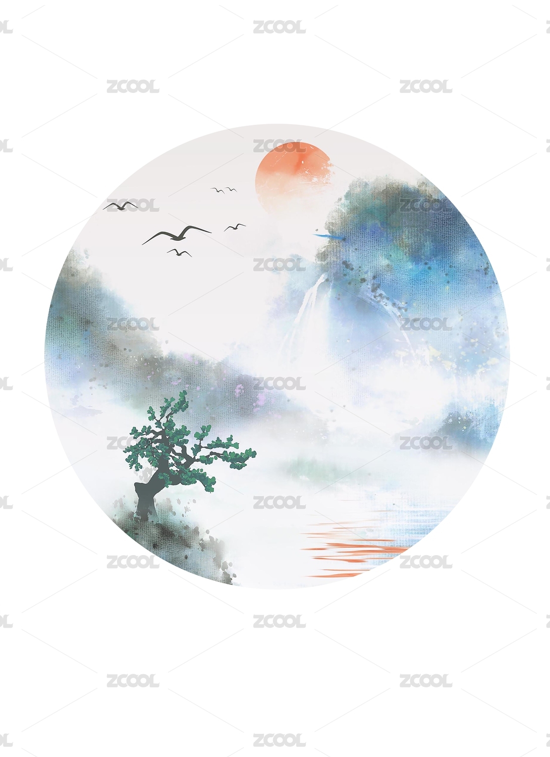 中式山水圆形插画