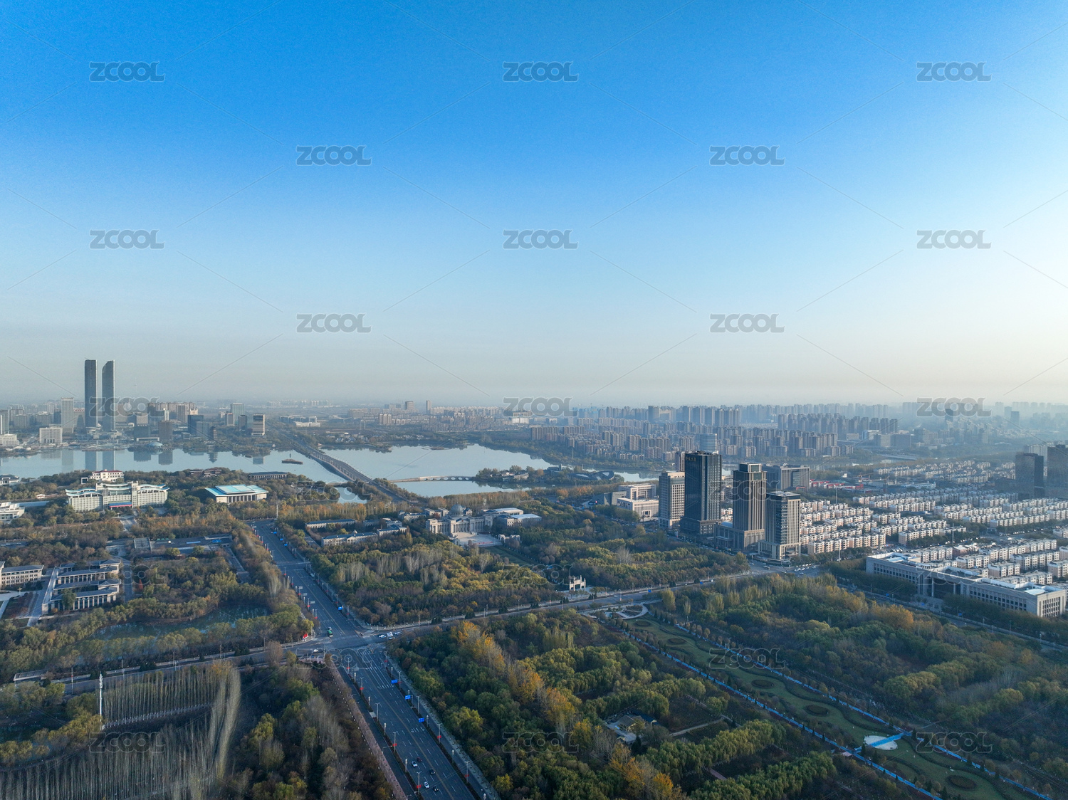 河南郑州惠济区中央公园城市风光