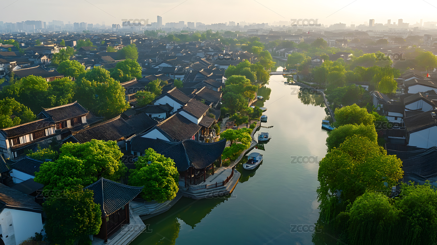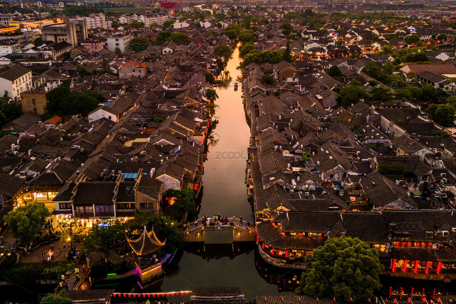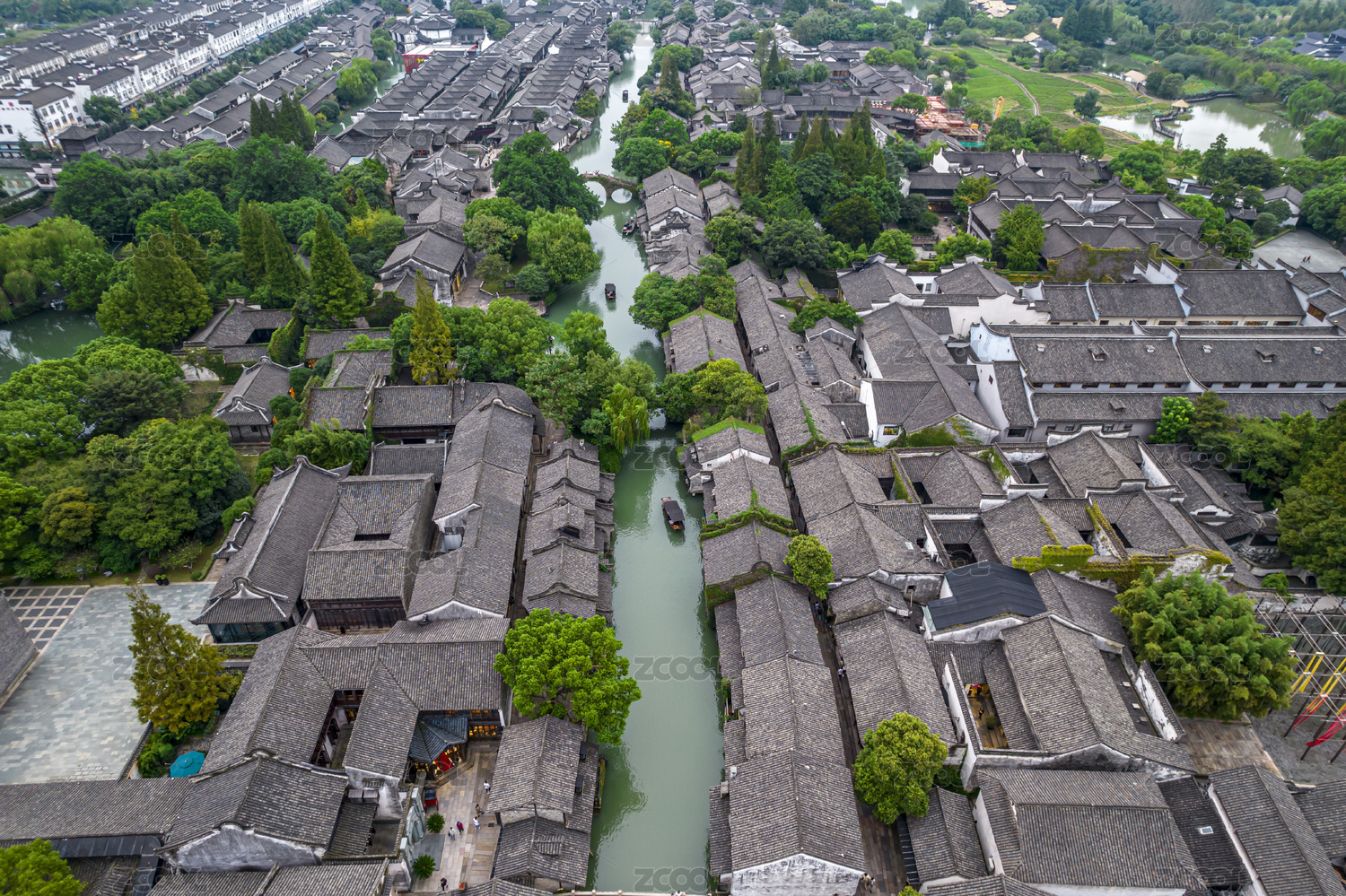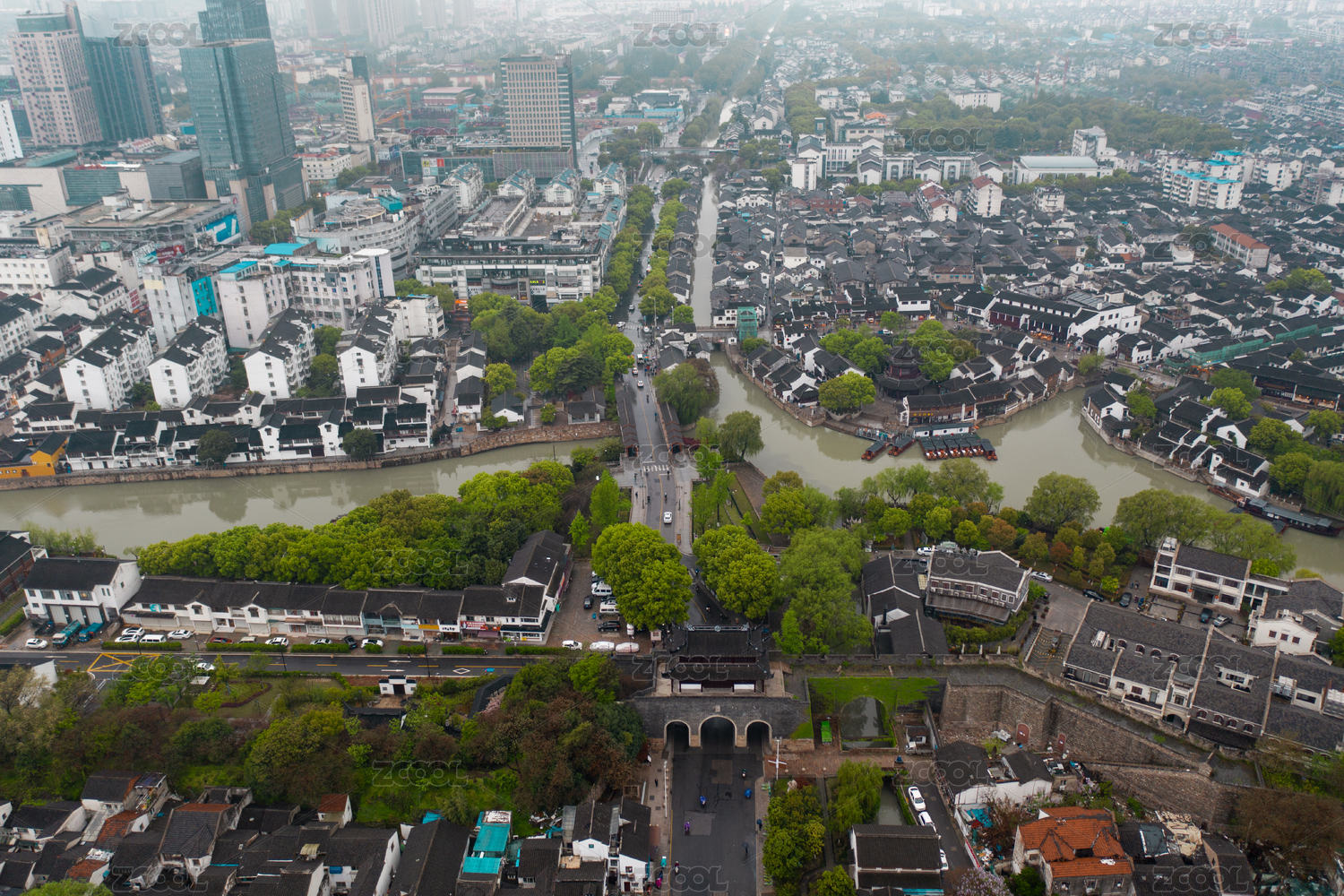航拍中国江苏苏州寒山寺殿宇建筑群风光