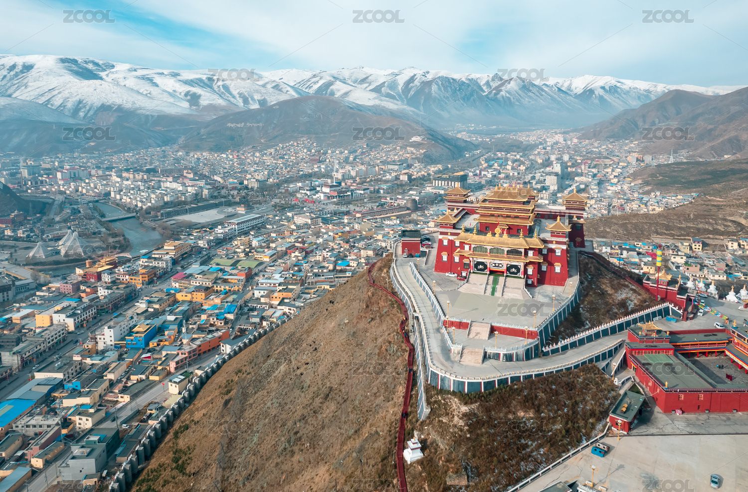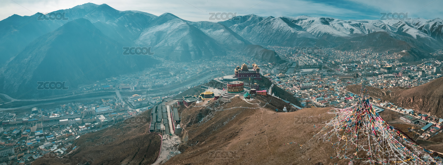中国青海省玉树市结古寺航拍