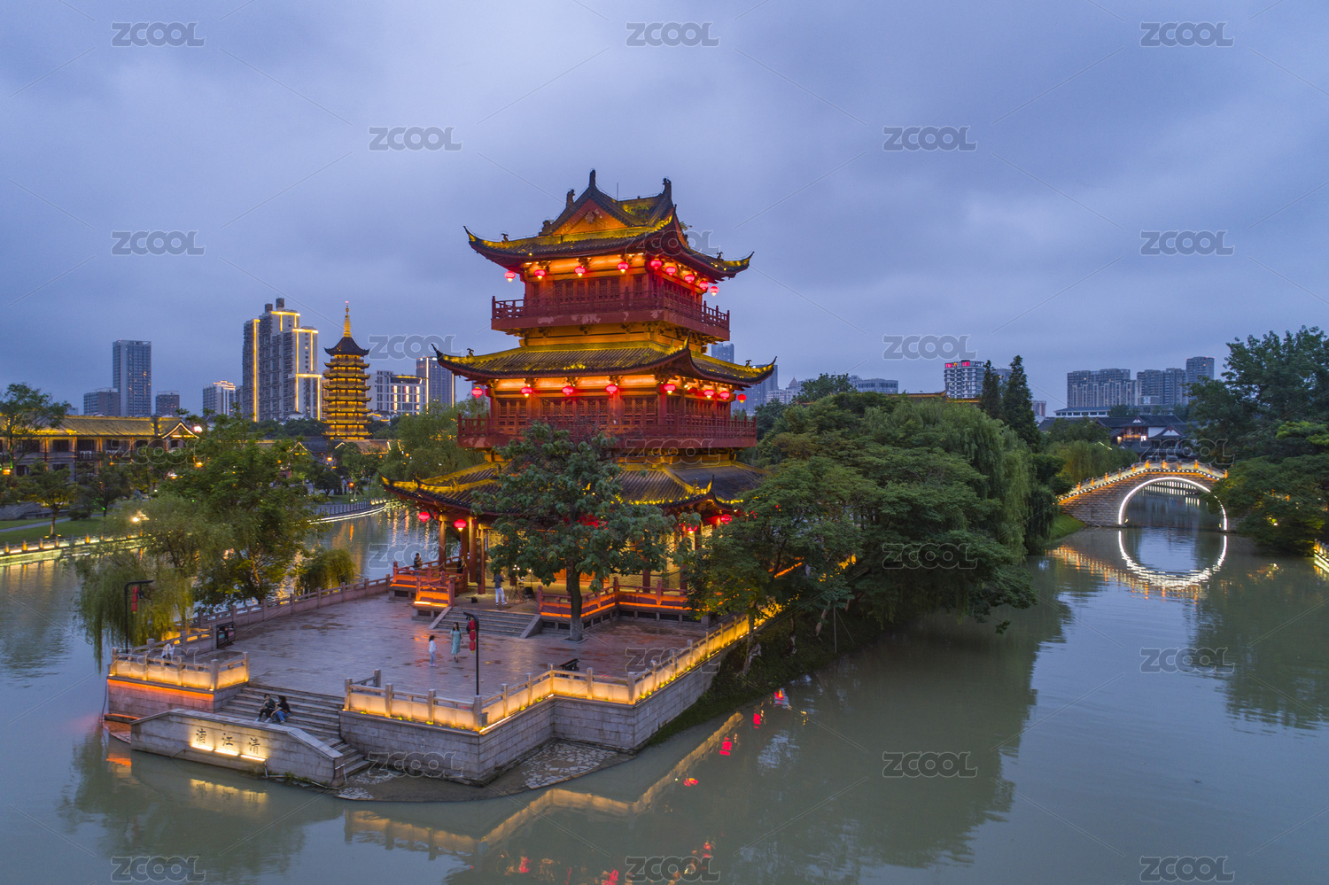 江苏,淮安市,里运河,历史长廊,清江浦楼,航拍,夜景,运河楹联馆,城市,夜晚