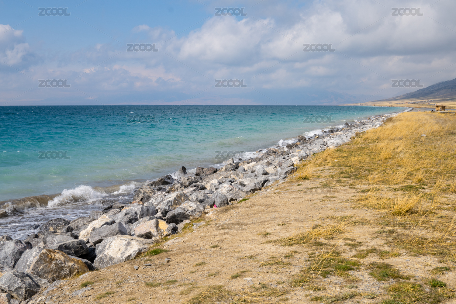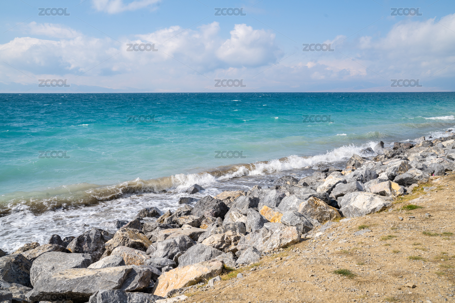 中国新疆赛里木湖海浪浪花石头