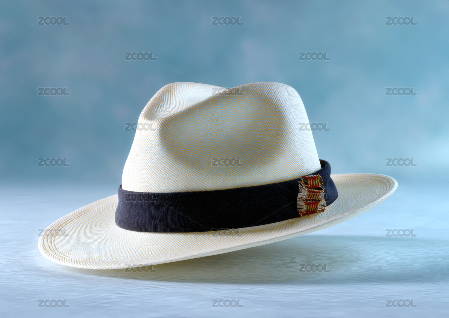 桌子上戴着黑色带子的帽子的特写高清图片