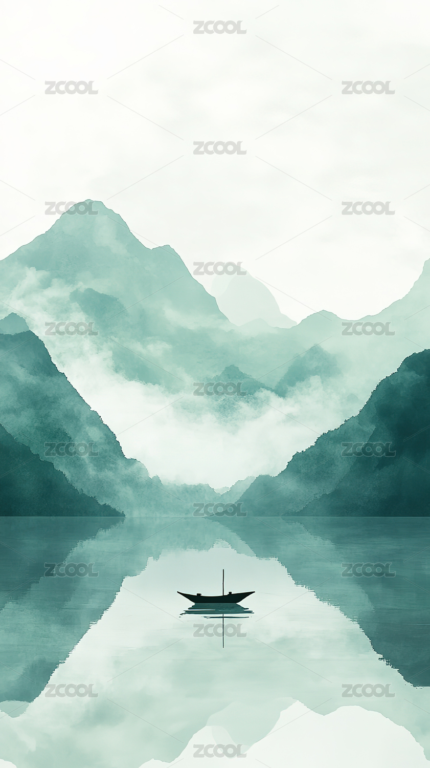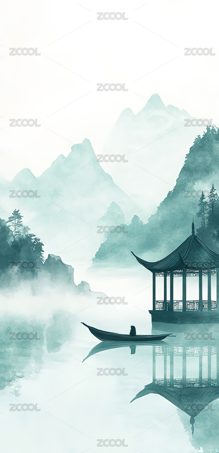 中国风水墨青山插画