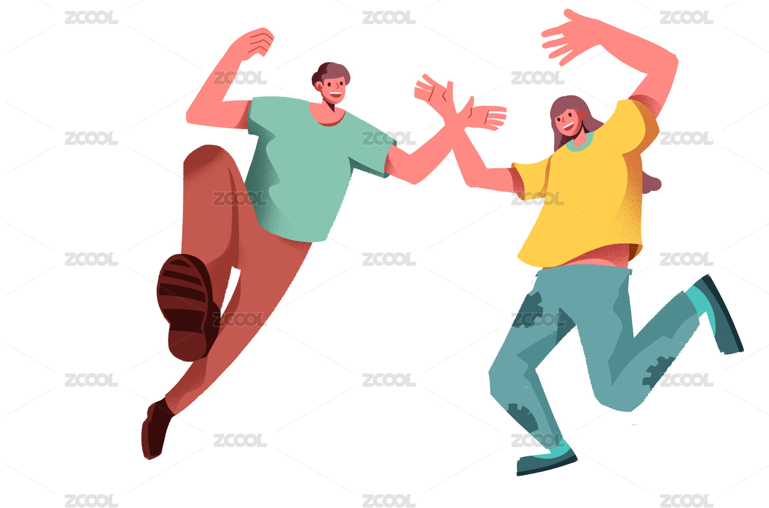 卡通手绘男女欢呼跳跃购物插画