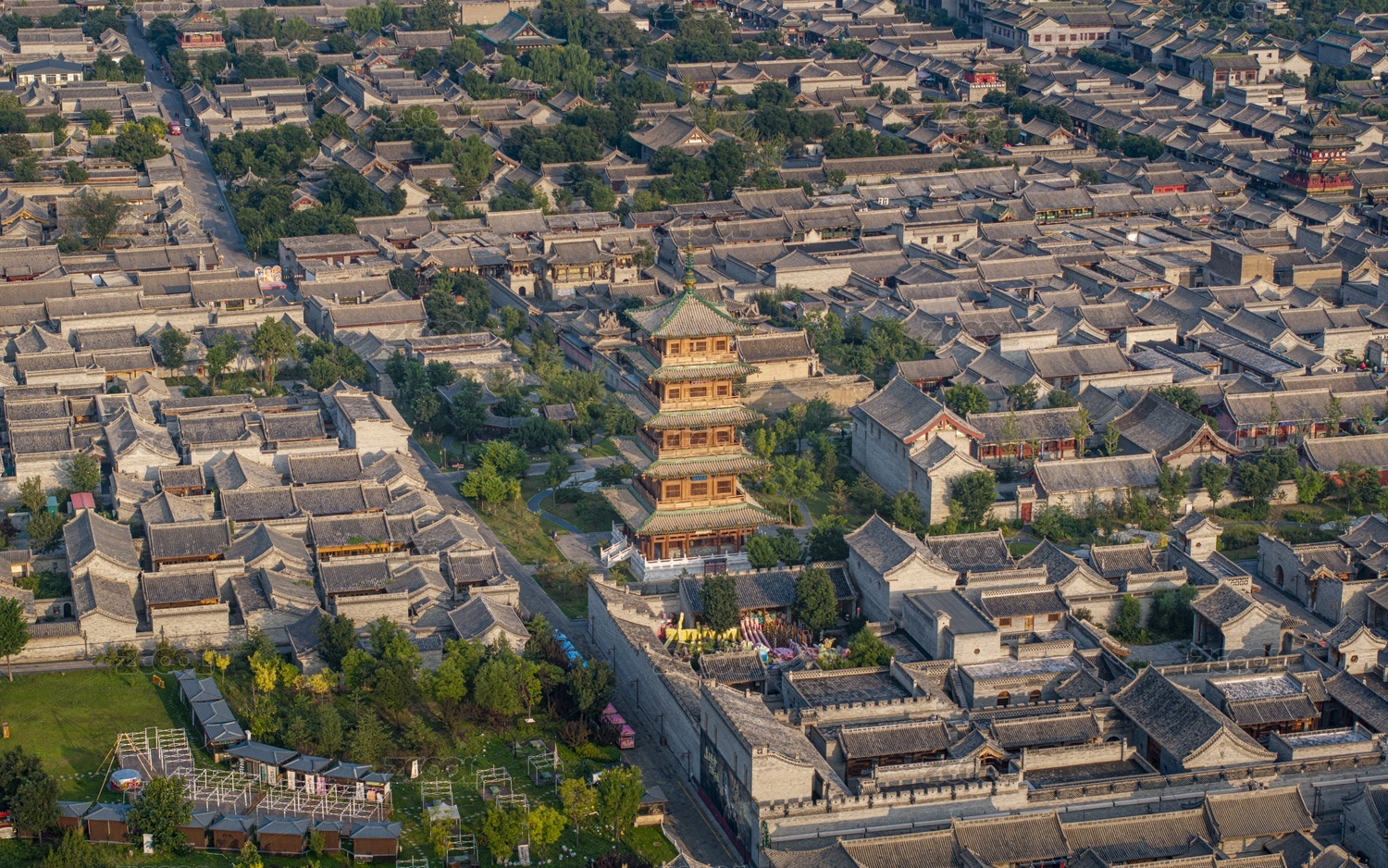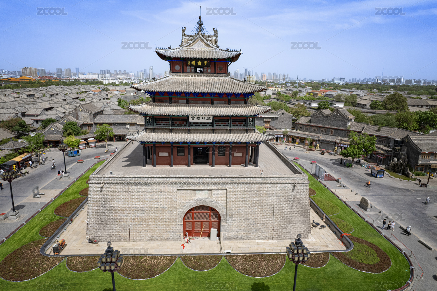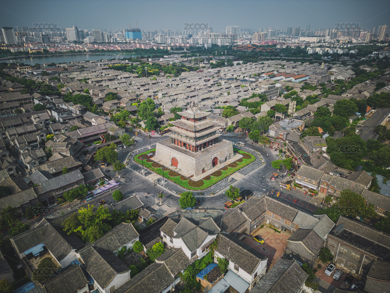 山东,聊城,东昌古昌,光岳楼,航拍视角,旅行,建筑,古镇,古老的,中国文化