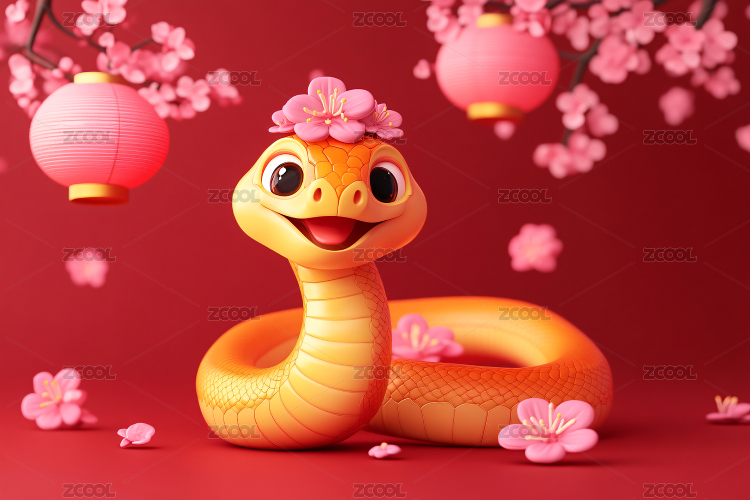 蛇,蛇年,生肖,花,花瓣,插画,3d,卡通,可爱,孤立