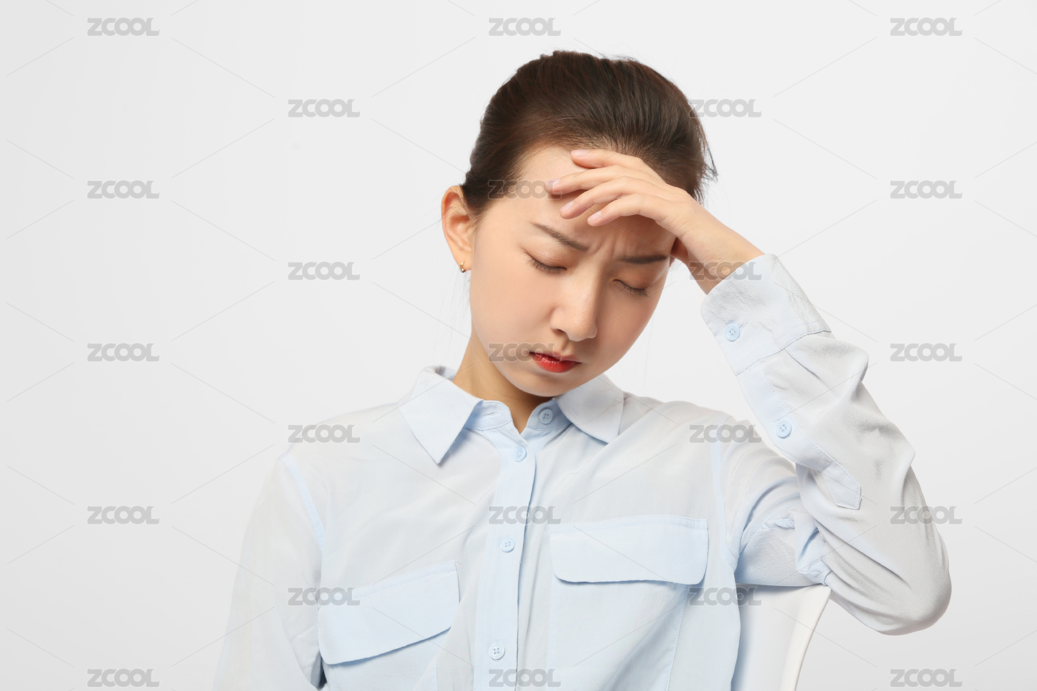 白色背景,衬衣,年轻,女性,东方人像,手势,20岁,思考,压力,愁容