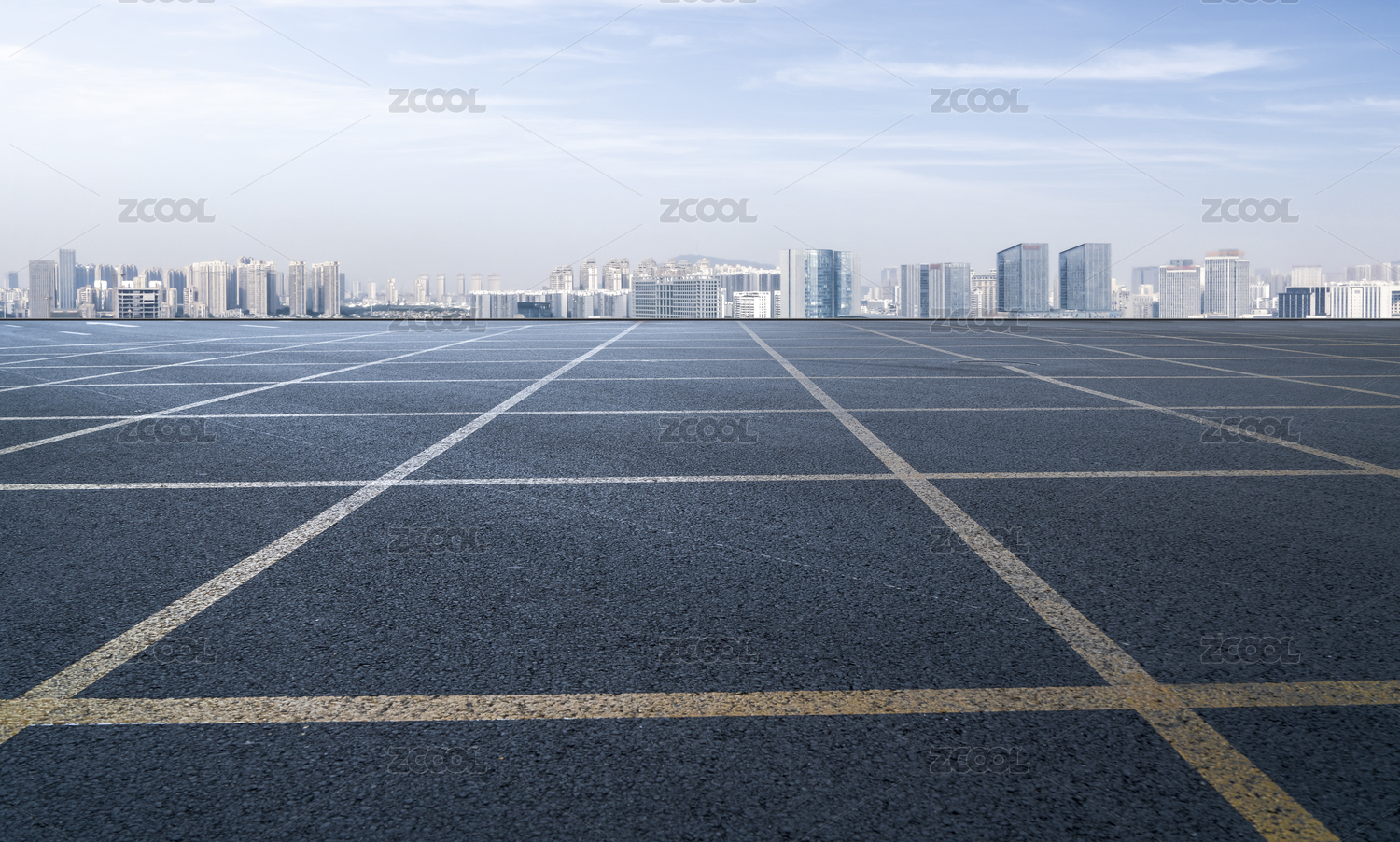 前景为空的道路地面和城市建筑景观