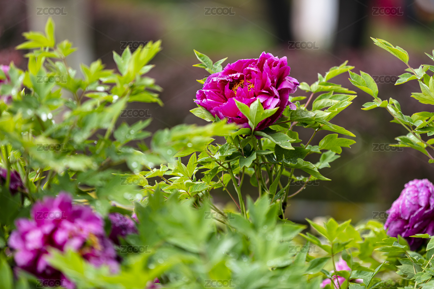 中国山东济南泉城公园牡丹园里的紫色牡丹花