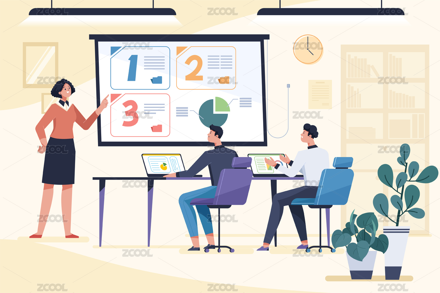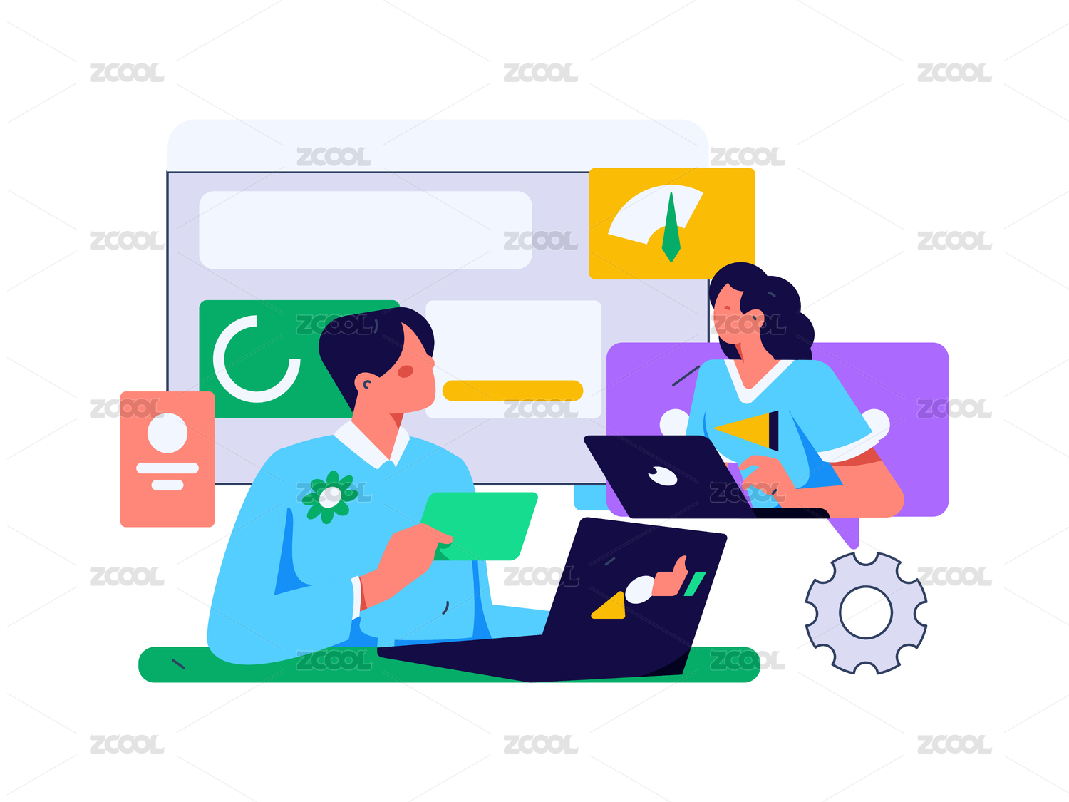为追赶进度的伙伴加油2,扁平矢量人物场景创意概念插画