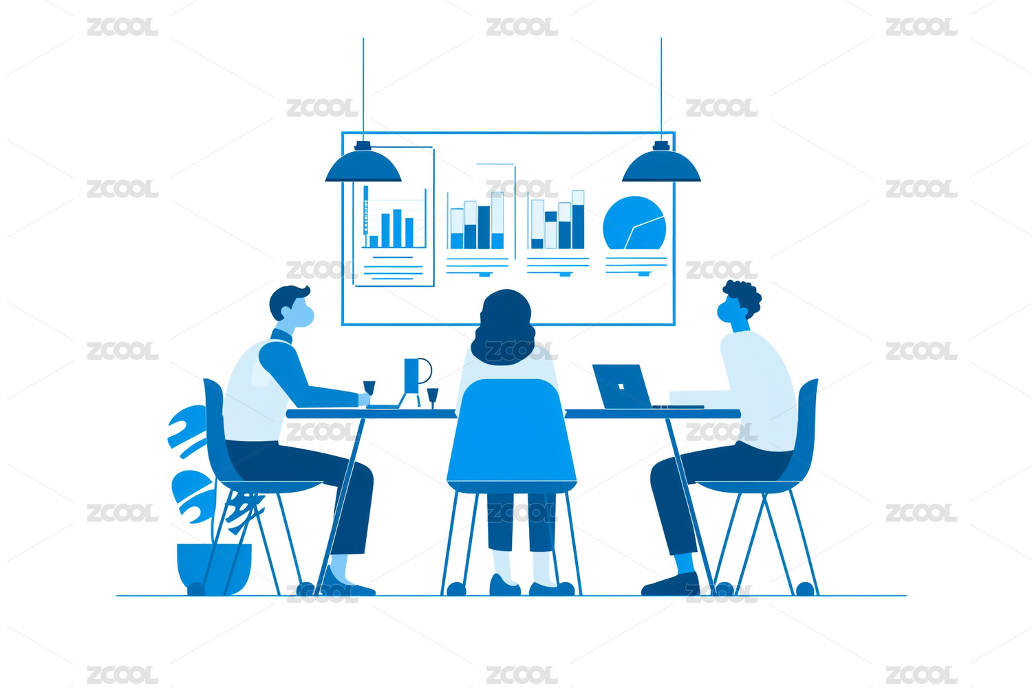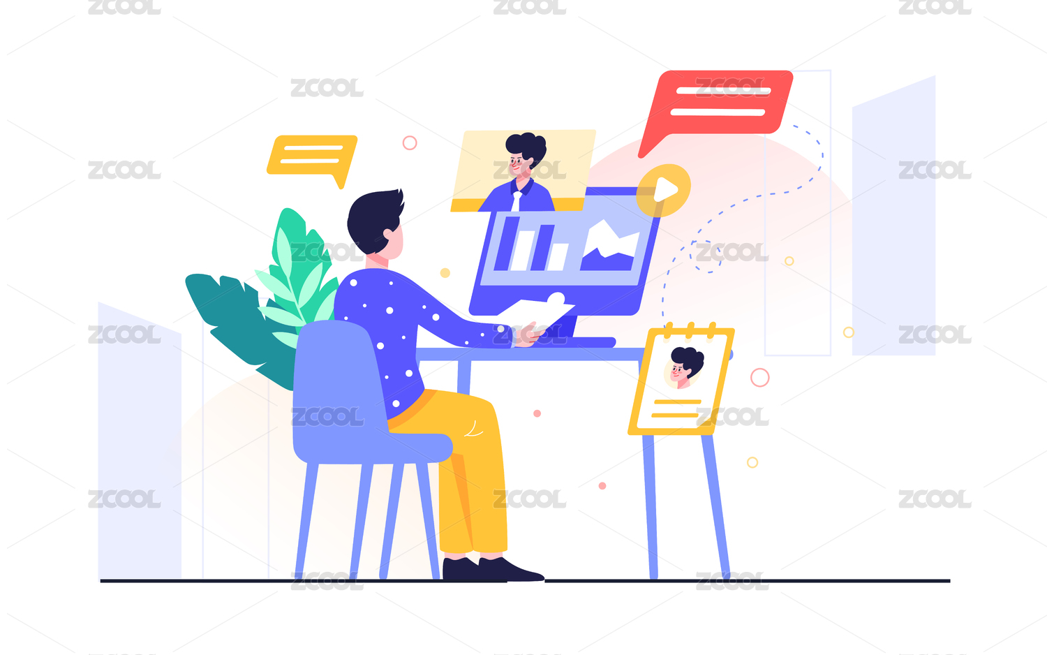 白领线上协作一起完成工作提高效率清新,矢量扁平概念插画
