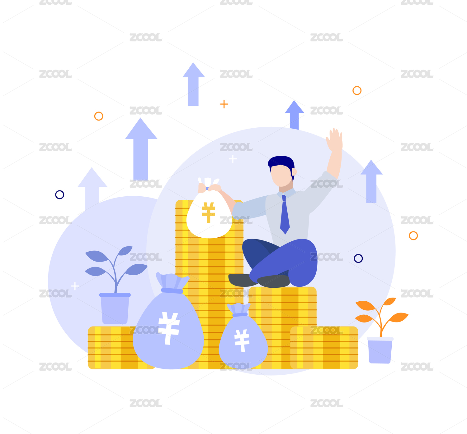 农夫洒水浇持续签到灌金钱树苗获得钱币扁平插画
