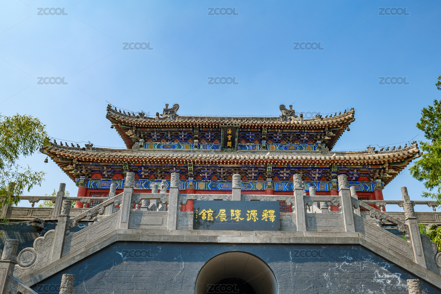 中国山西大同云冈石窟灵岩寺前门塔楼仰视风光