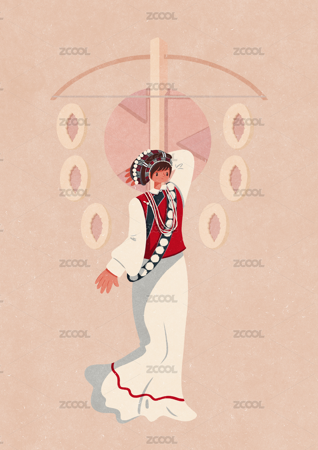 少数民族,传统文化,特色,插画,卡通,扁平,门巴族,巴尔匣,帽子,图腾
