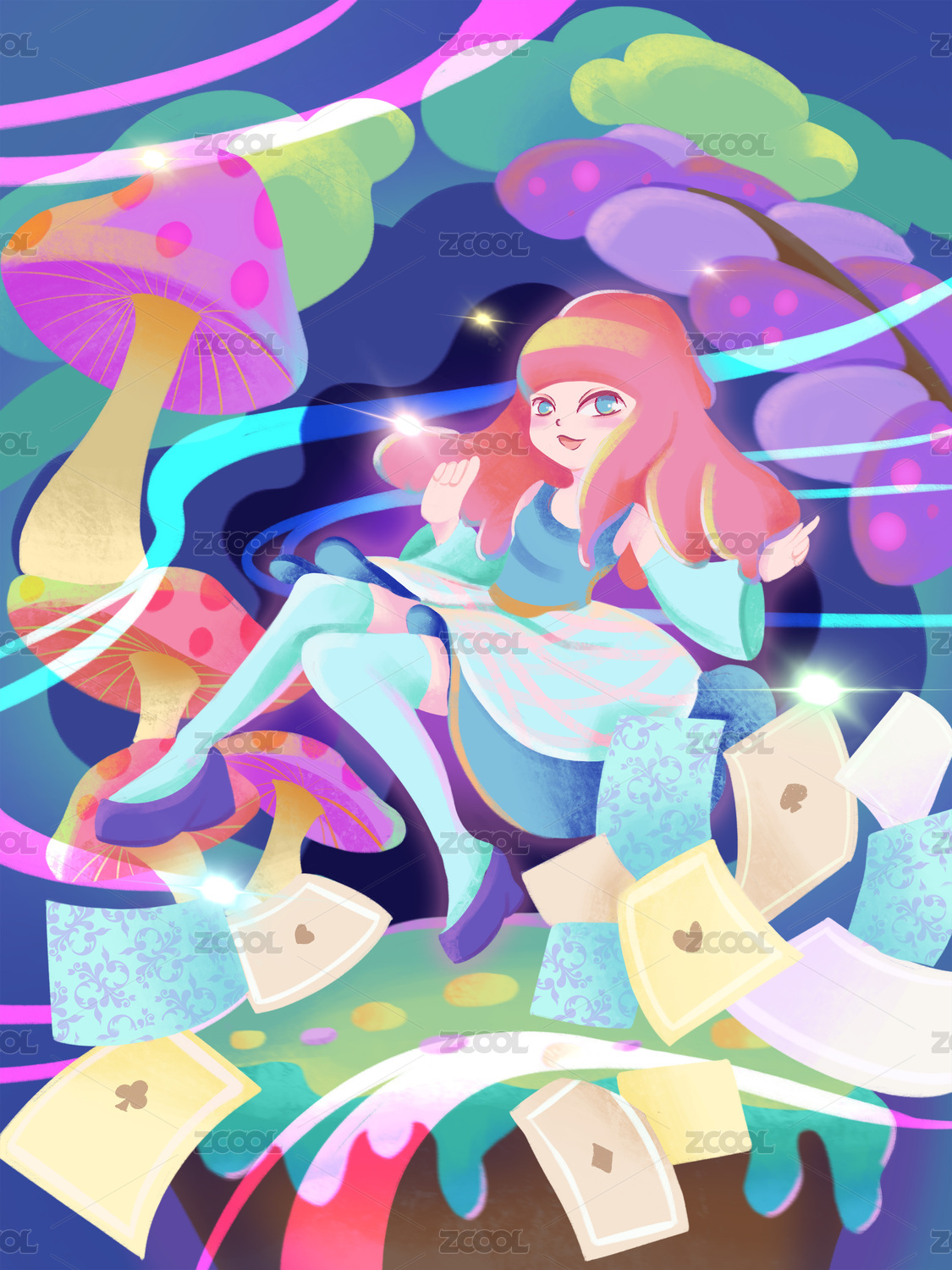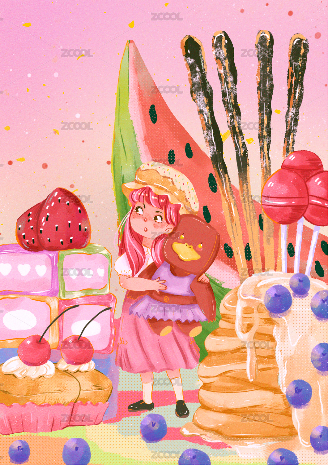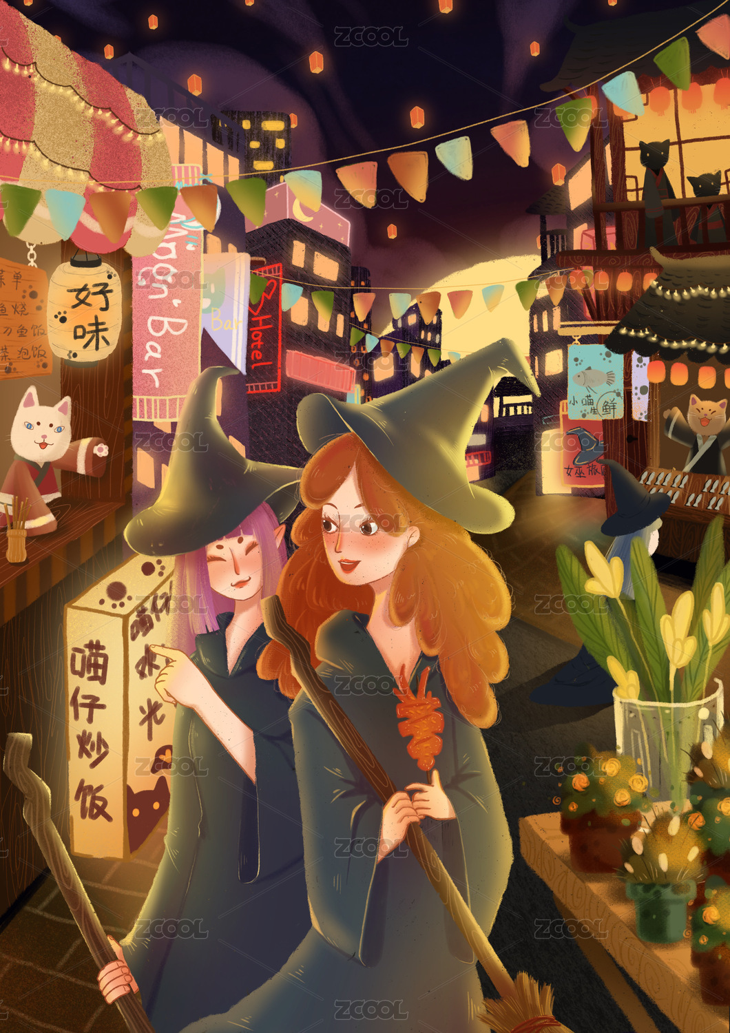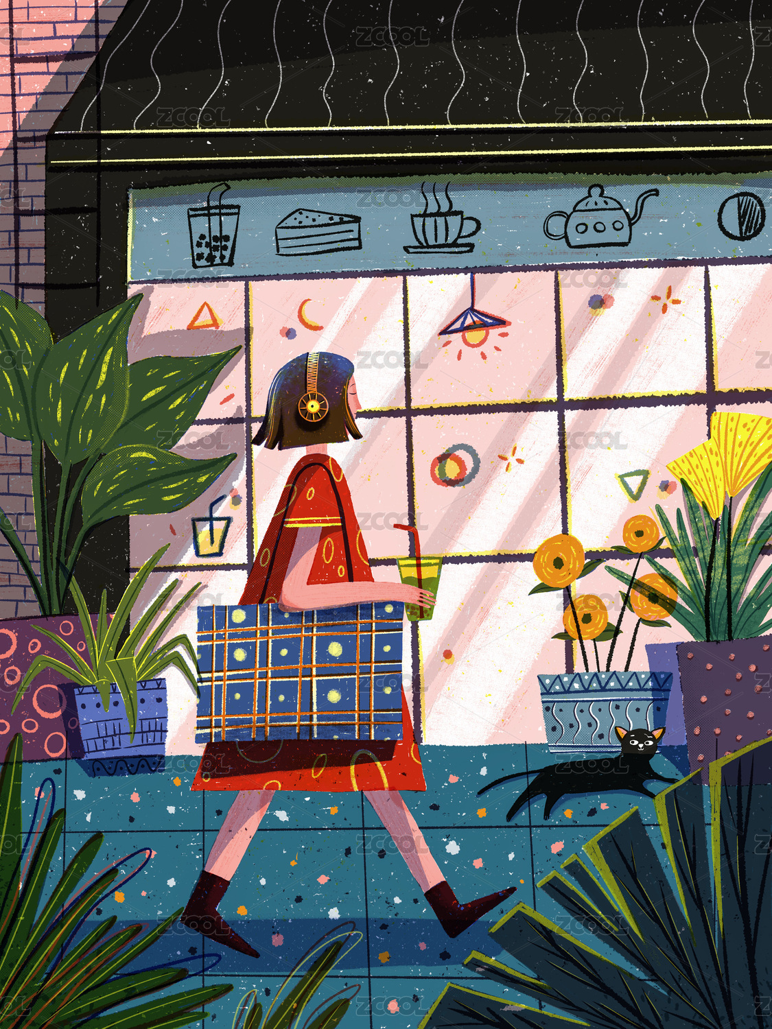 木偶,扭蛋机,奇遇,街角,女孩,行李,儿插,插画,卡通