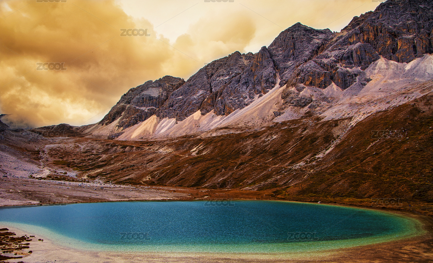 川西稻城亚丁的圣湖牛奶海在秋季的风景