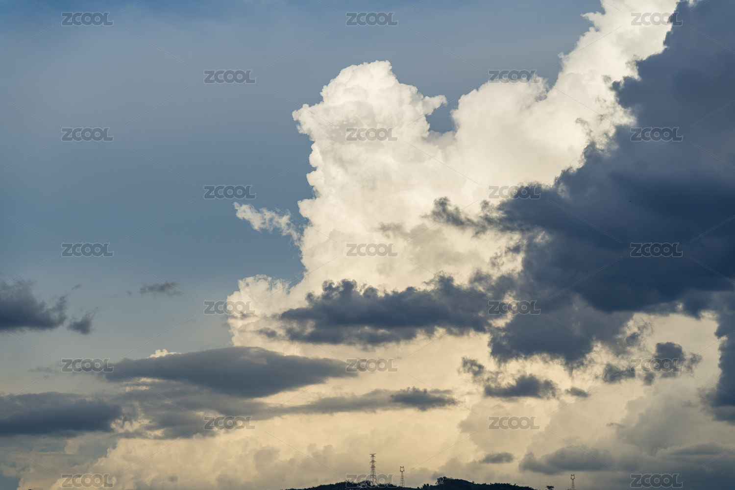 山间电力塔与蓝天白云