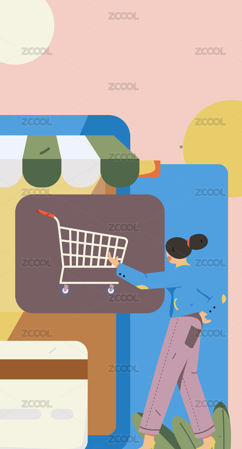 在线购物矢量插画竖版
