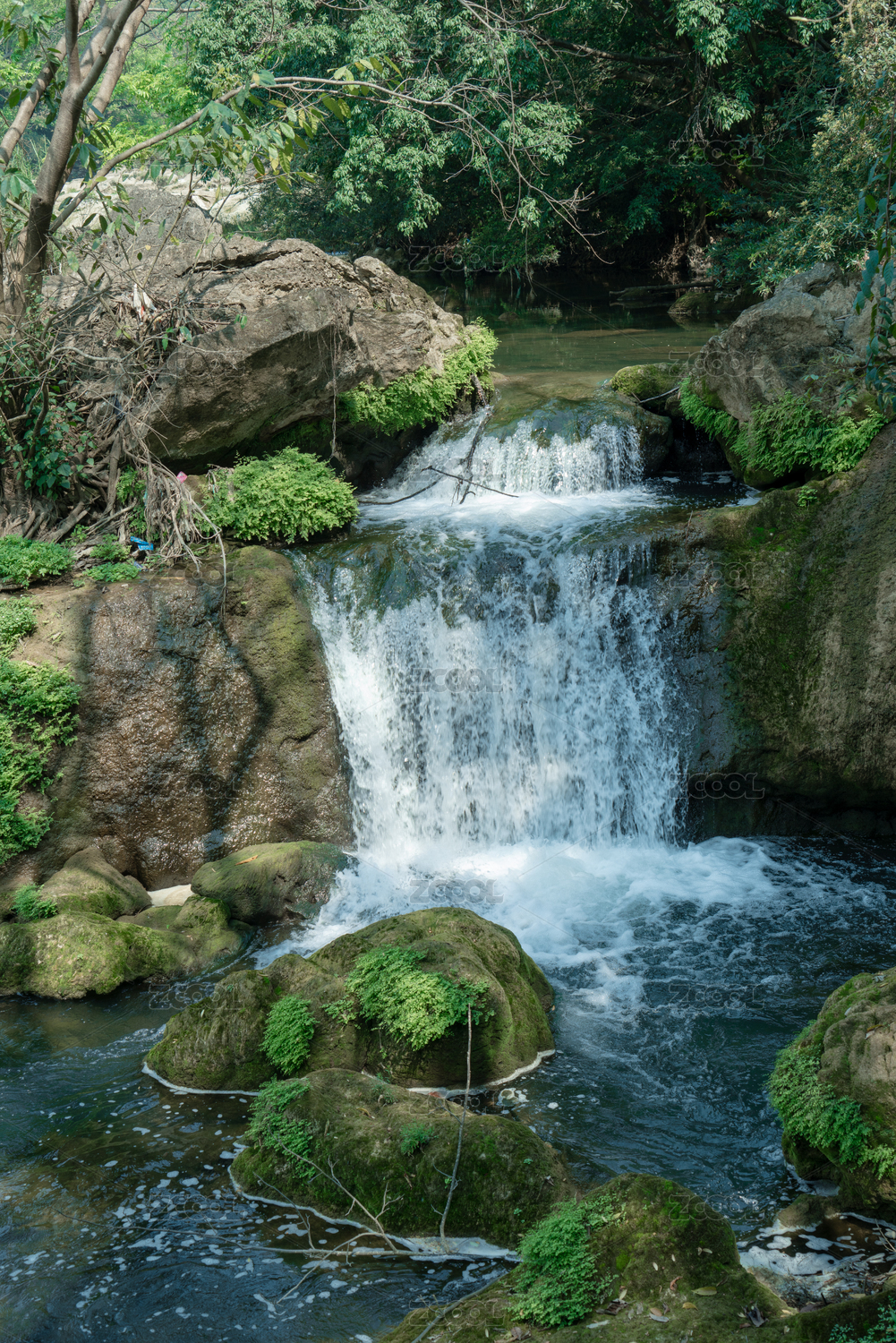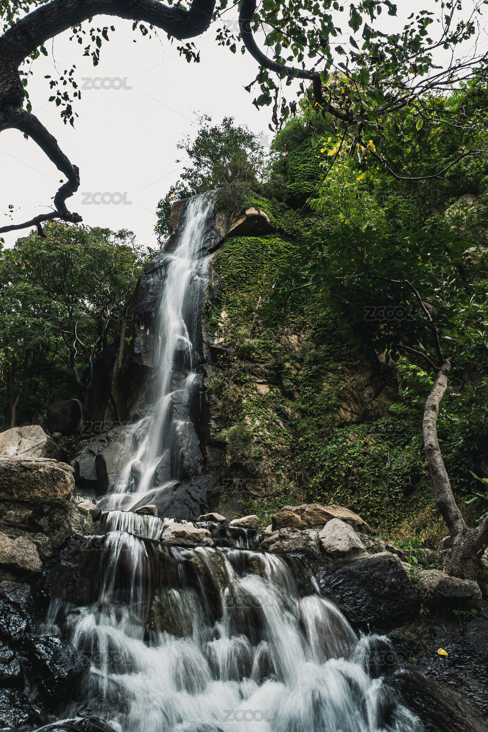 山区户外岩石上流淌的小瀑布,福建龙岩