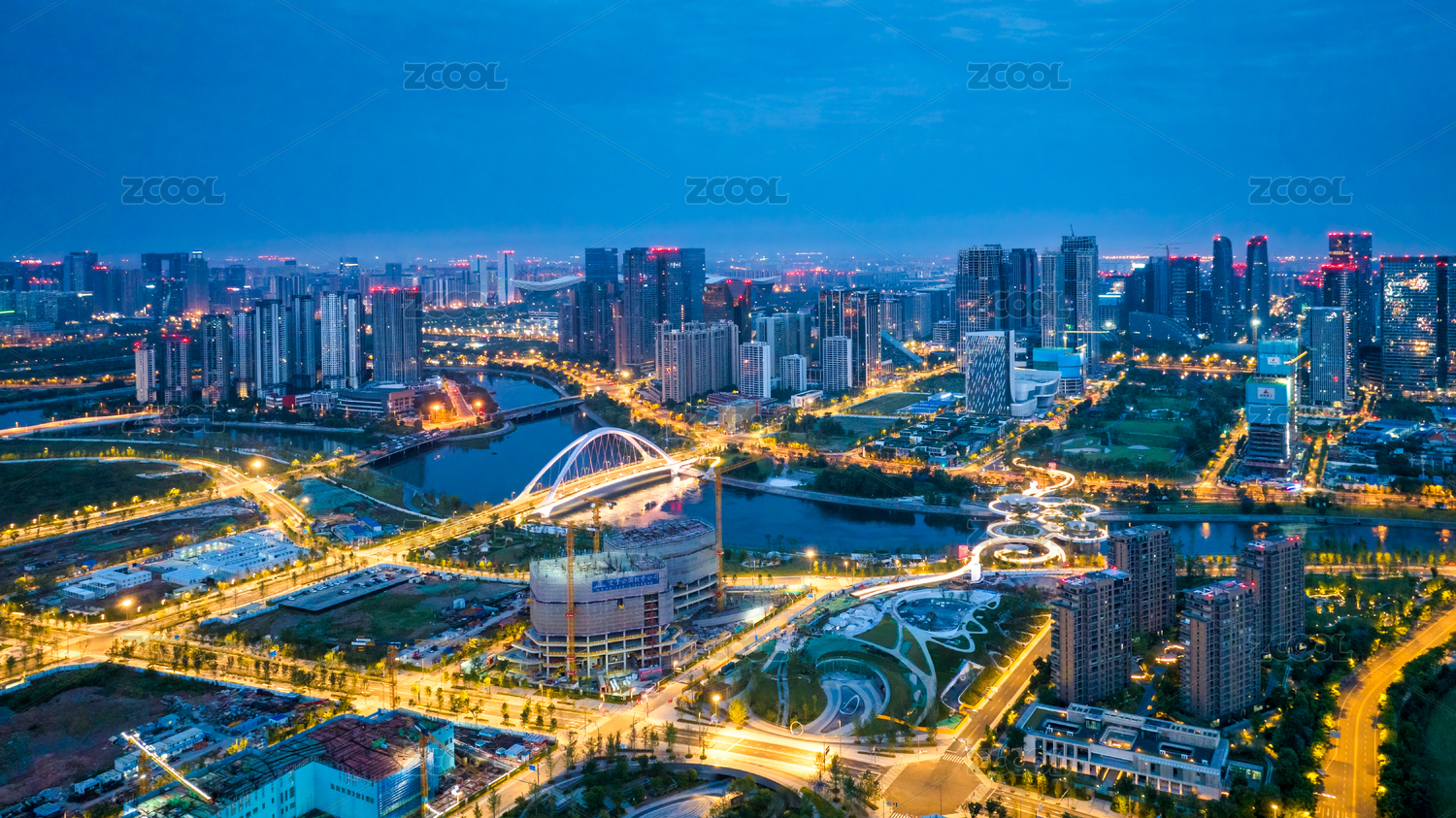 航拍合肥政务文化新区天鹅湖CBD夜色