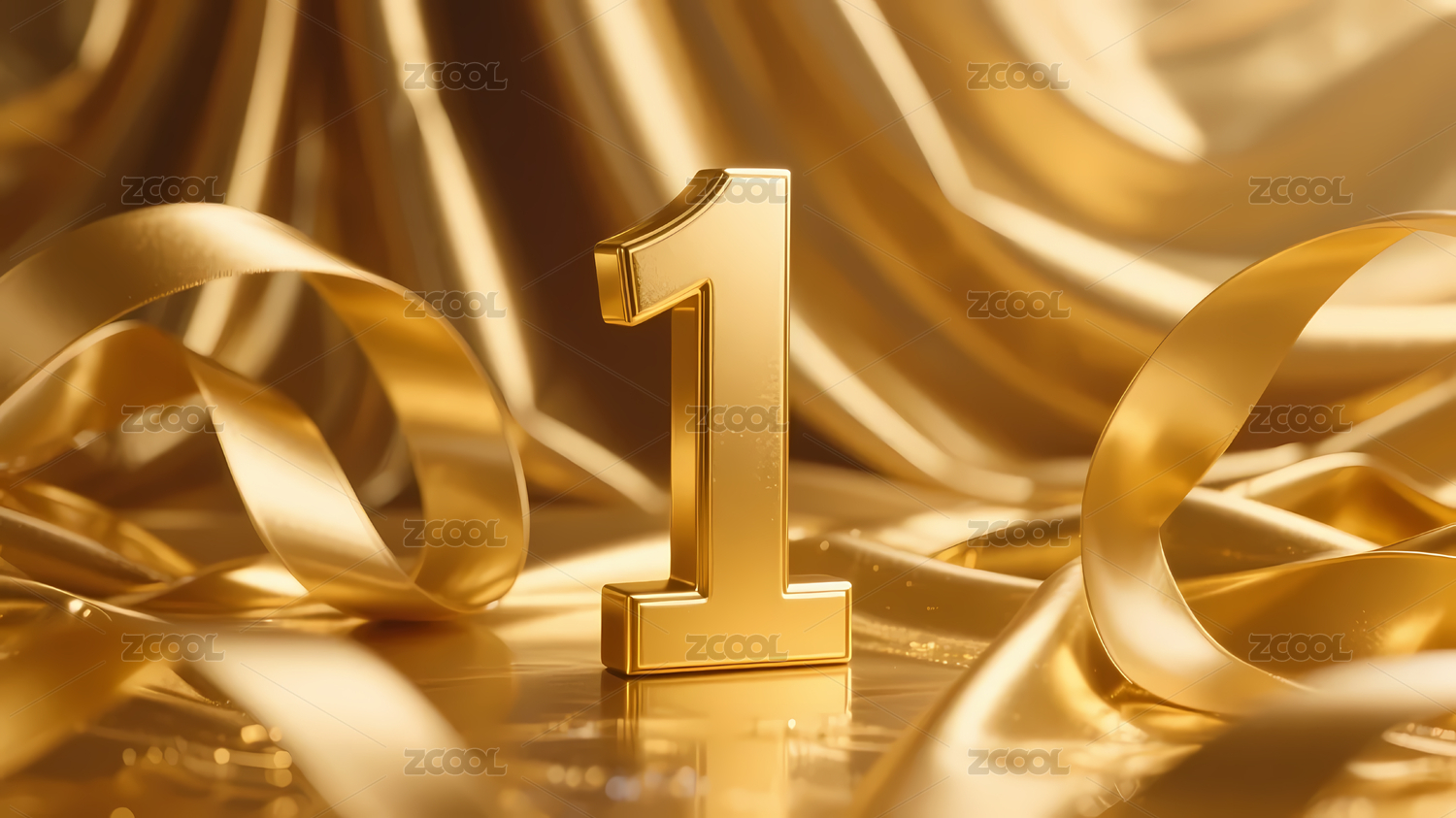 3D,金色粒子,倒计时,数字,1,周年庆海报,壁纸,插画,背景板,金色