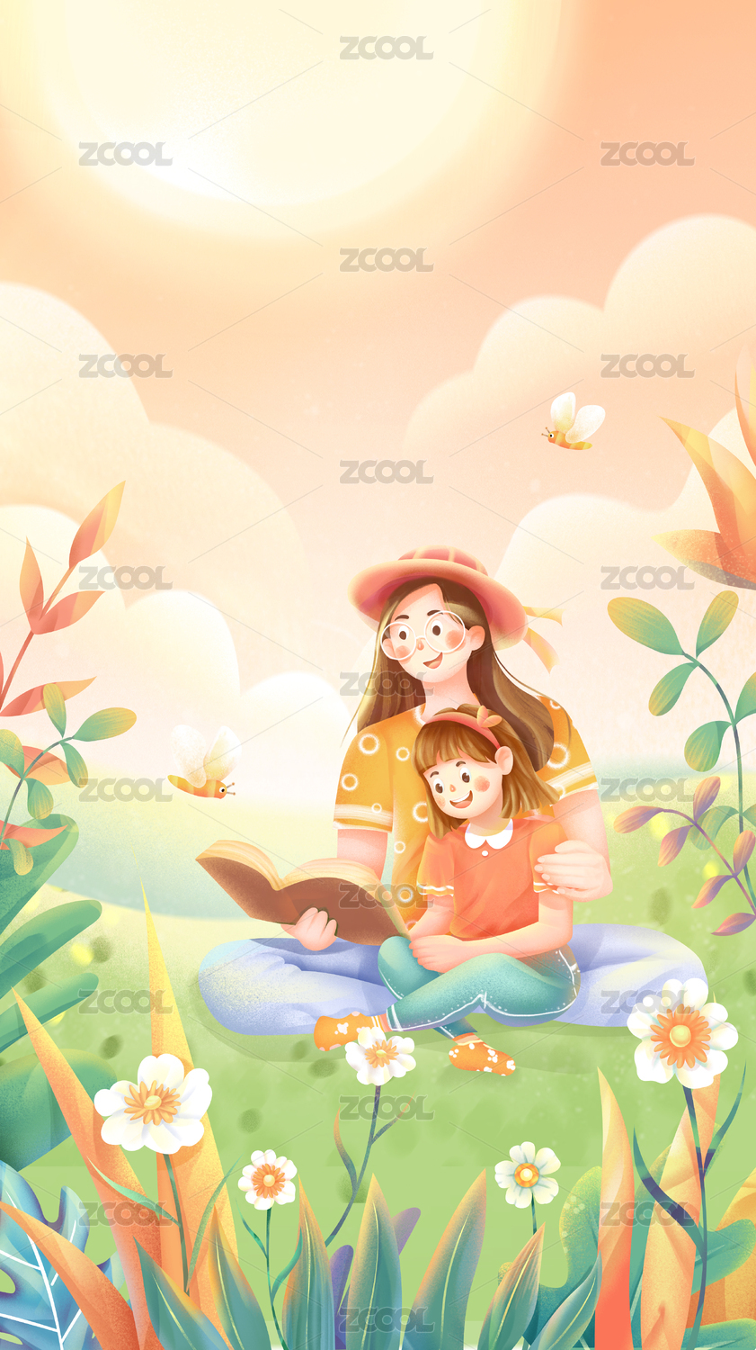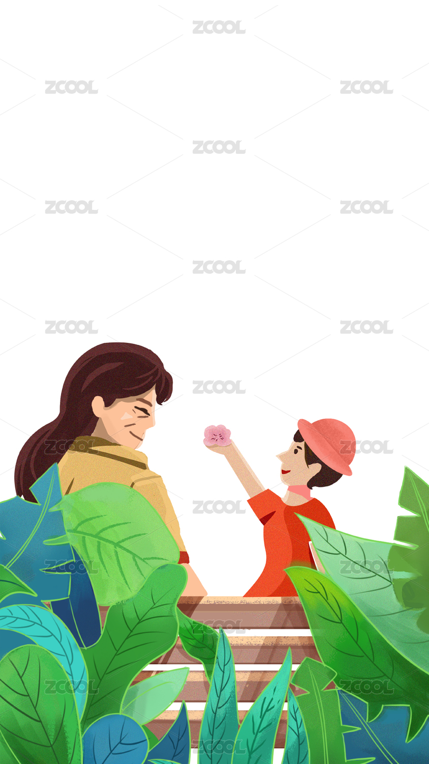 手绘小清新插画伟大的父亲抱着可爱的孩子
